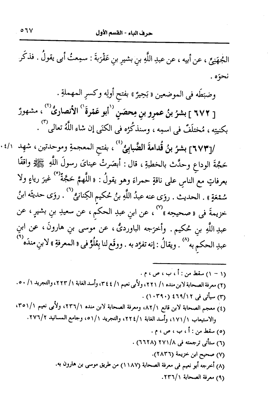 673- بشر بن قدامة الضبابي بفتح المعجمة وموحدتين.