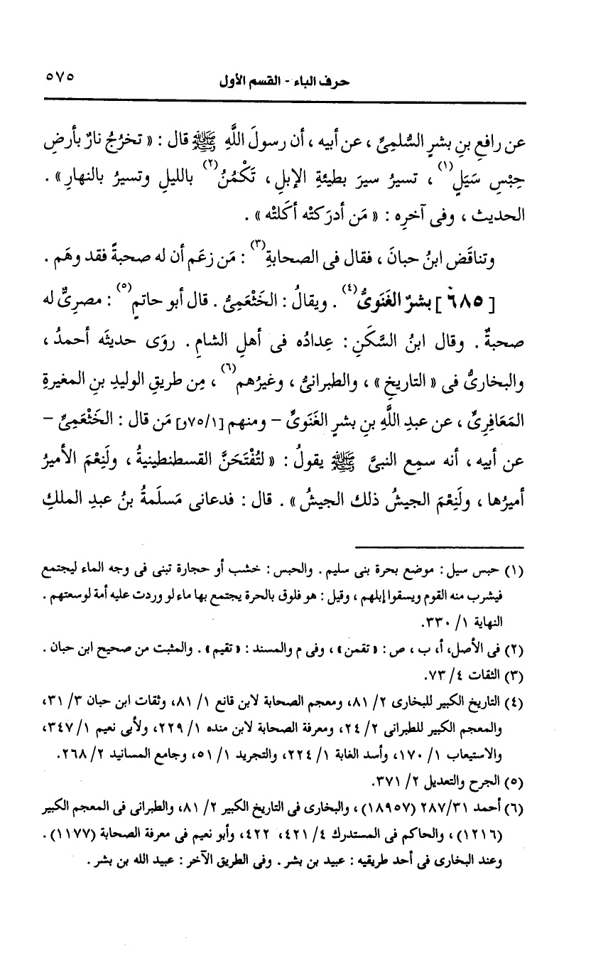 قلت: القائل ذلك هو عَبد الله بن بشر.