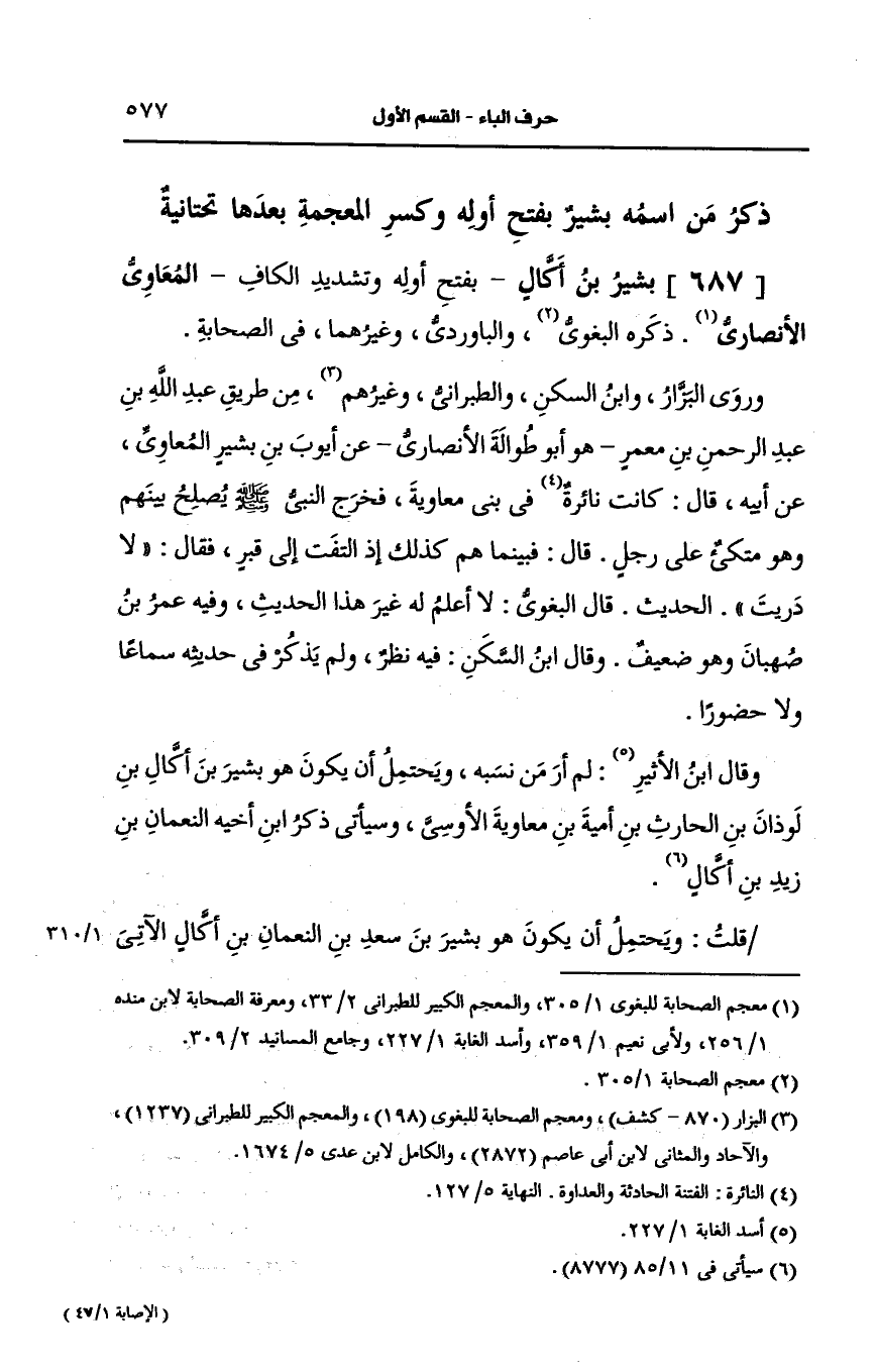 687- (ز) بشير بن أكال بفتح أوله وتشديد الكاف المعاوي، الأَنصارِيّ.