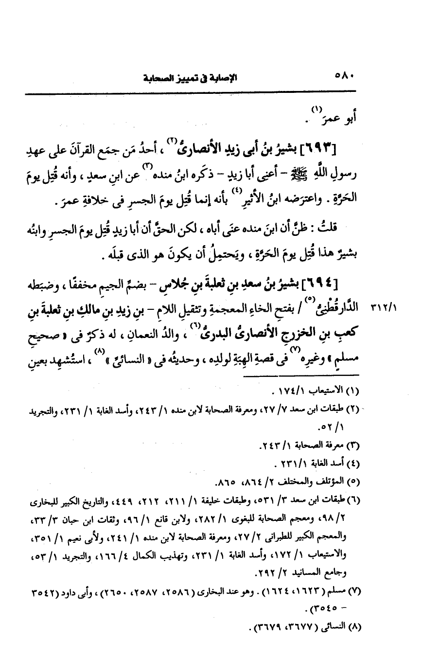 قلت: ظن أن ابن مَنْدَه عنى أباه ولكن الحق أن أبا زيد قتل يوم الجسر وابنه بشير هذا قتل يوم الحرة ويحتمل أن يكون هو الذي قبله.