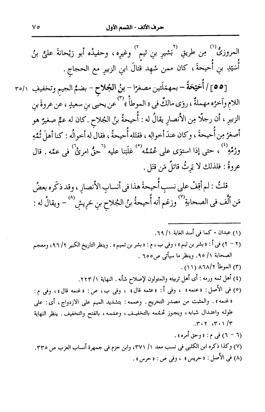 55- أحيحة بمهملتين مصغرا بن الجلاح بضم الجيم وتخفيف اللام وآخره مهملة.
