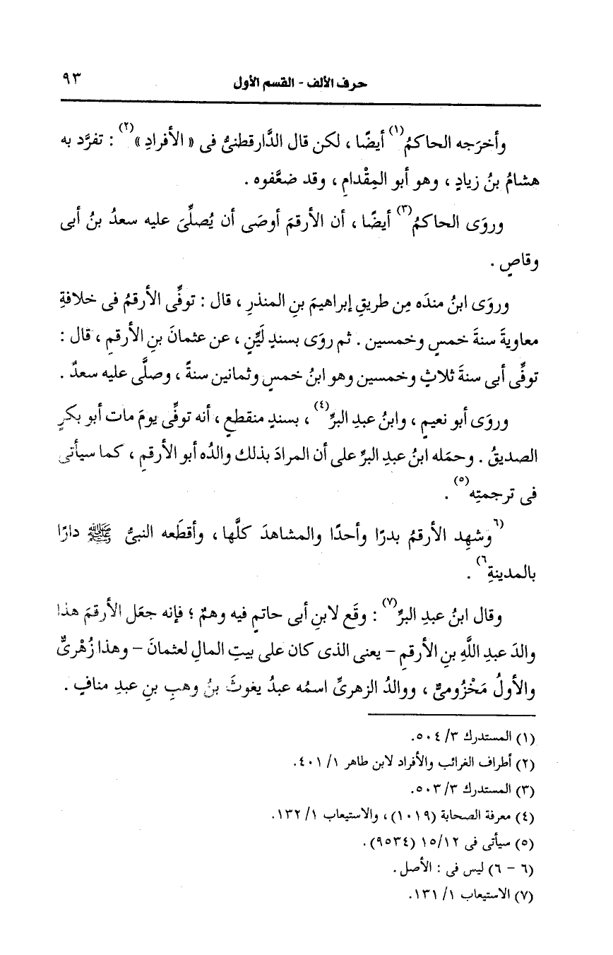وشهد الأرقم بَدرًا وأحدا والمشاهد كلها وأقطعه النَّبيّ صَلى الله عَلَيه وسَلم دارا بالمدينة.