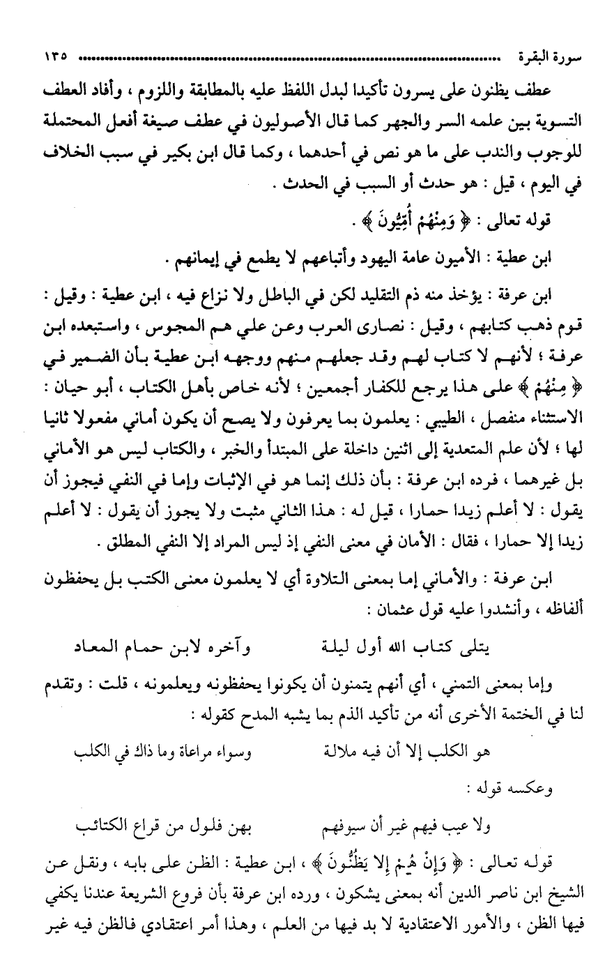قال ابن عرفة: والأَمَانِيّ، إمّا بمعنى التلاوة أي لا يعلمون معنى الكتاب بل يحفظون ألفاظه فقط، وأنشدوا عليه قولا في عثمان: