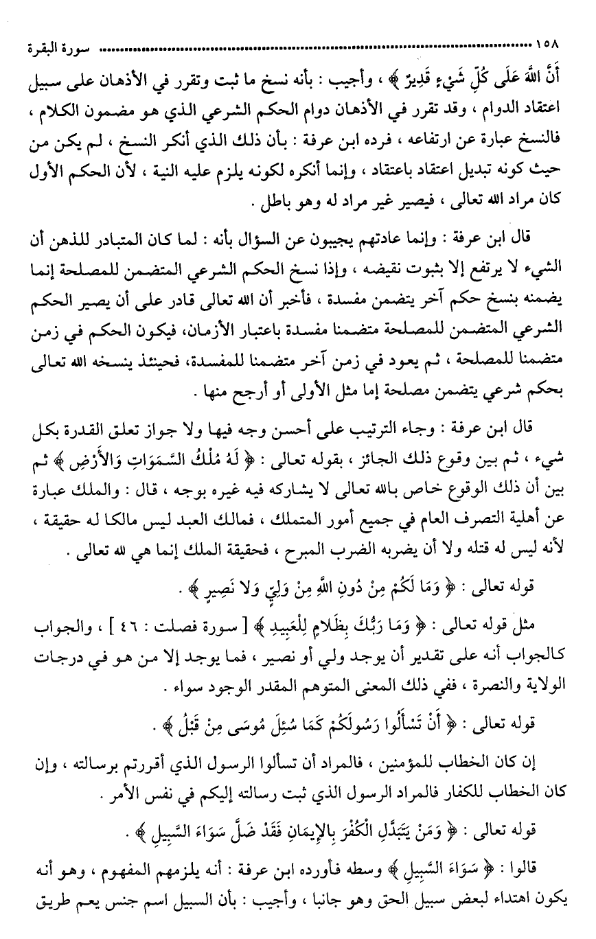 أَنَّ الله على كُلِّ شَيْءٍ قَدِيرٌ}؟ وأجيب بأنه نسخ ما ثبت وتقرر في الأذهان على سبيل اعتقاد الدّوام، وقد تقرر في الأذهان دوام الحكم الشرعي الذي هو مضمون الكلام القديم، فالنّسخ عبارة عن ارتفاعه.