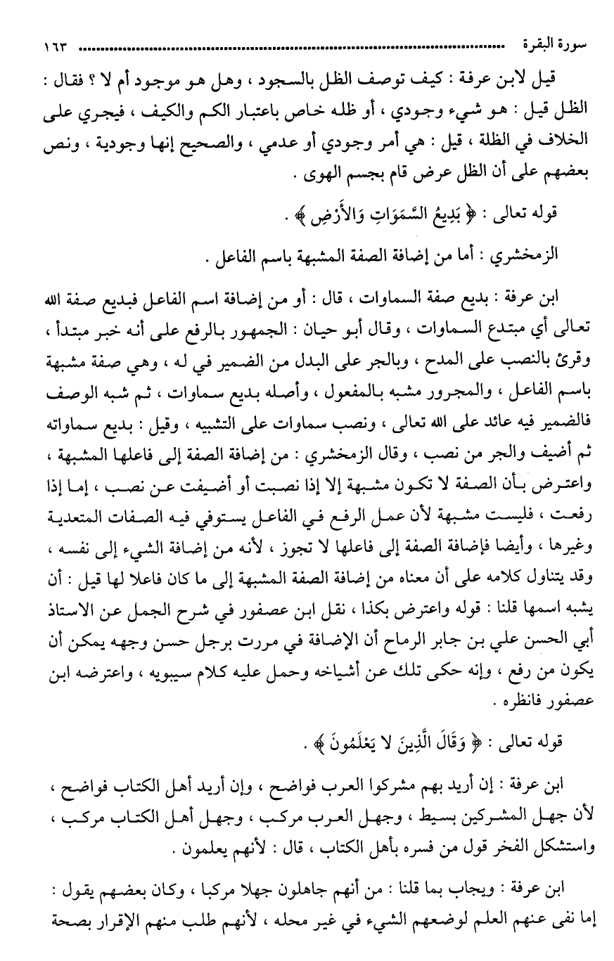 قال ابن عرفة: ف «بدِيعُ» صفة «السماوات». قال: أو من إضافة اسم الفاعل.