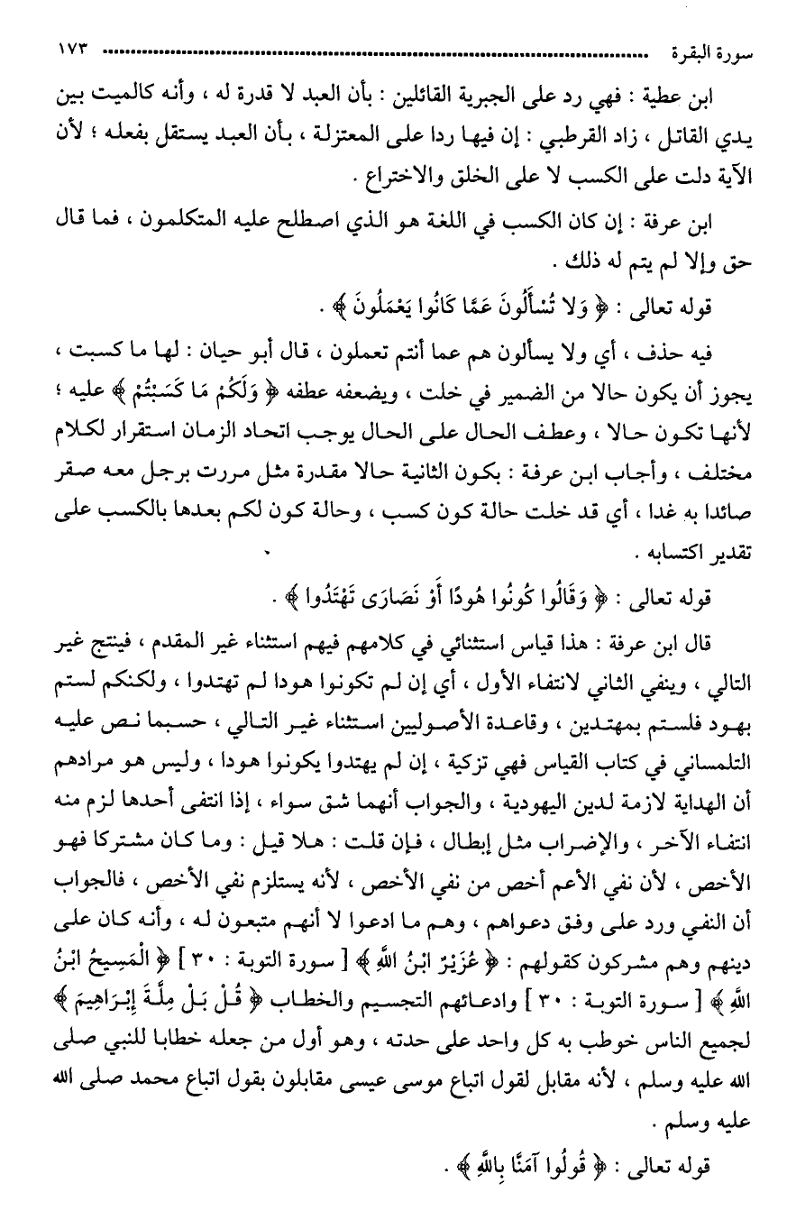 قال ابن عرفة: إن كان الكسب في اللغة هو الذي اصطلح عليه المتكلمون، فما قاله حق وإلا لم يتم له ذلك.
