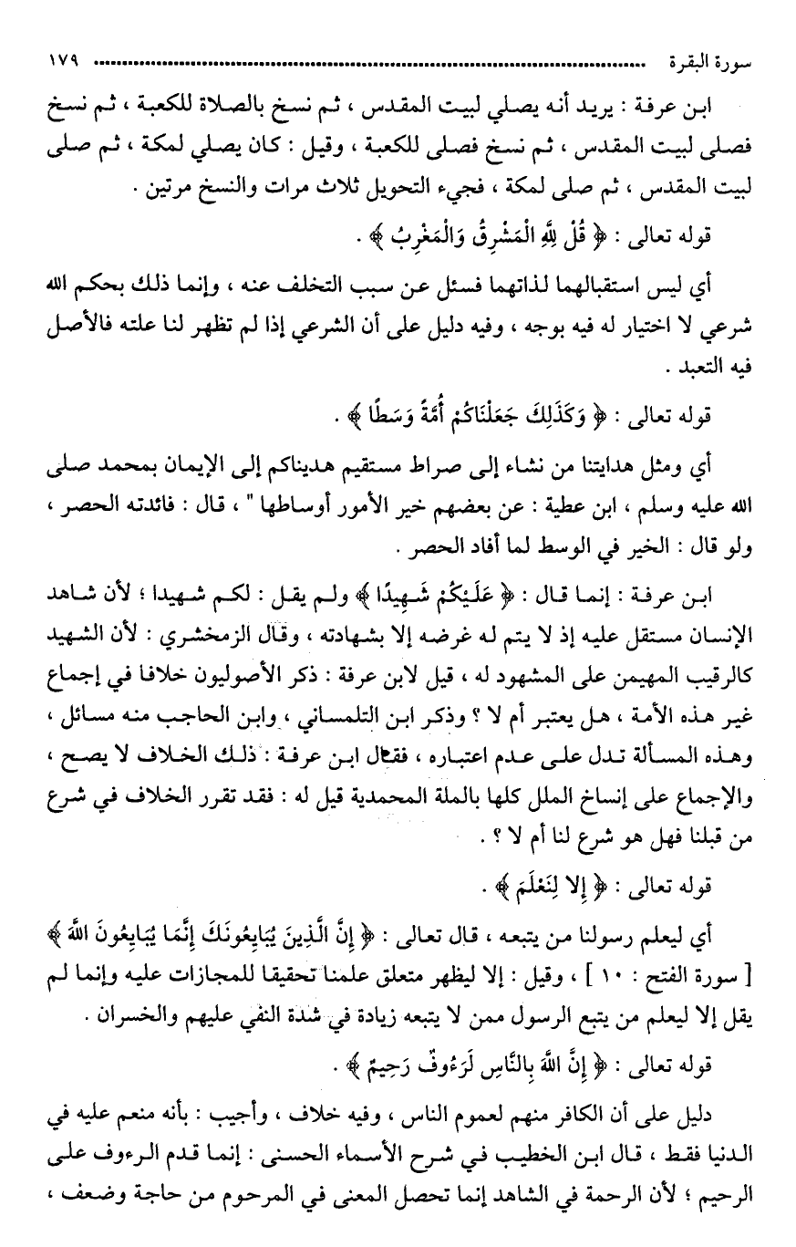 قال ابن عرفة: يريد أنه كان يصلي لبيت المقدس ثم نسخ بالصلاة للكعبة، ثم نسخ فصلى لبيت المقدس ثم نسخ فصلى للكعبة وقيل: كان يصلي لمكّة ثم صلى لبيت المقدس ثم صلى لمكة فيجيء التحويل ثلاث مرات والنسخ مرتين.