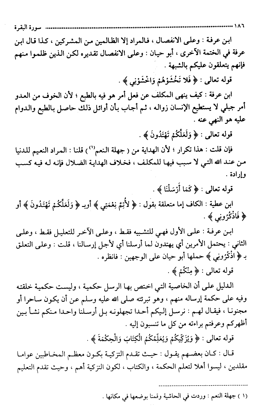 (قال بعضهم): حيث يقدم التزكية يكون معظم المخاطبين عواما مقلدين ليسوا أهلا (لتعلم) الحكمة والكتاب فتكون التزكية أهم، وحيث يقدم التعليم