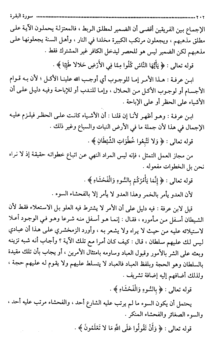 ابن عرفة: وهو أظهر، لأنّ لو قلنا إن الأشياء كانت على الحظر فيلزم عليه الإجمال في هذا الأمر لأن من جملة ما في الأرض النبات والسباع وغير ذلك.
