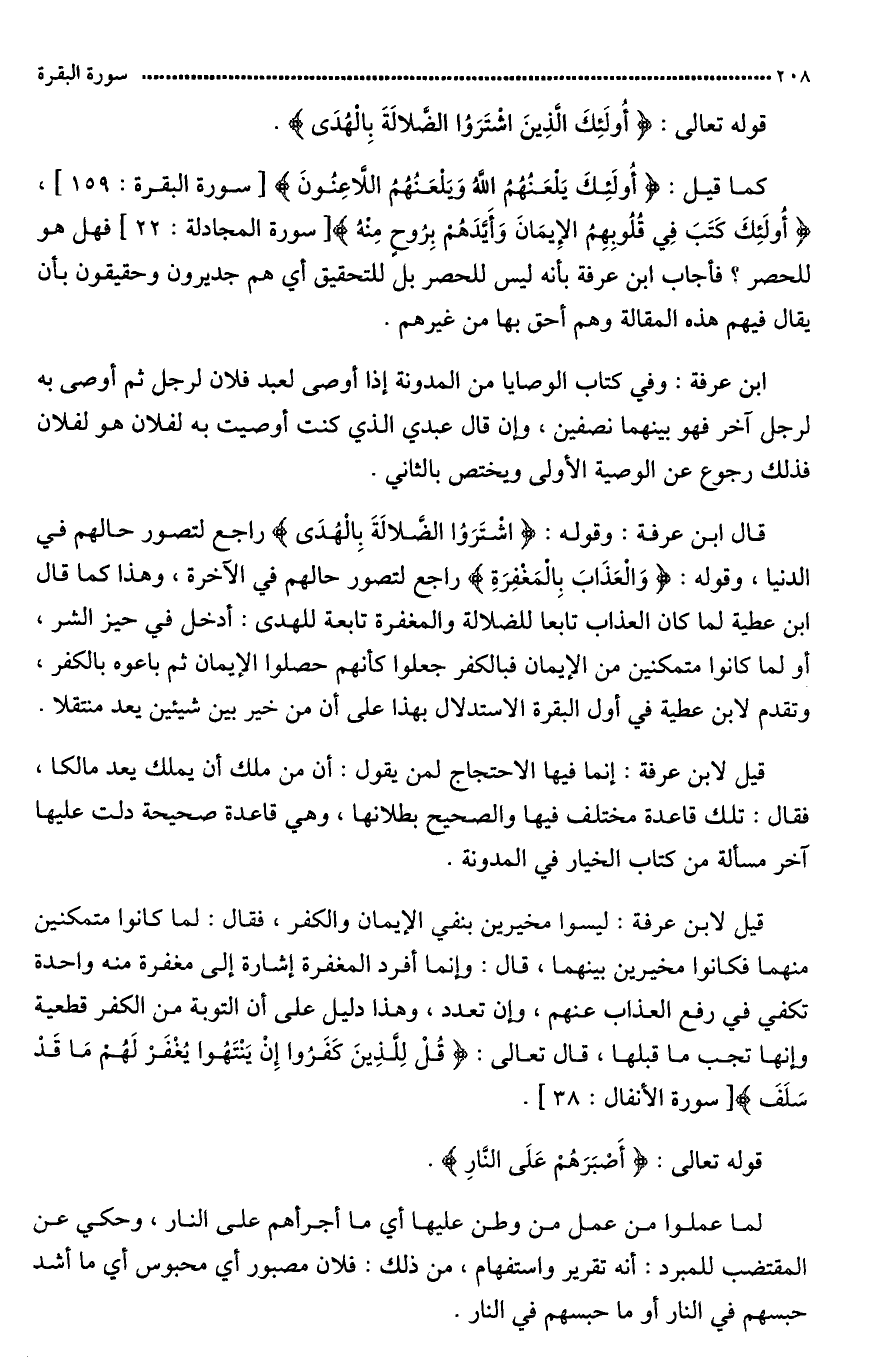 (فأجاب ابن عرفة: بأنه ليس للحصر بل للتحقيق، أي فهم جديرون وحقيقون بأن يقال فيهم هذه المقالة وهي أحق من غيرهم.