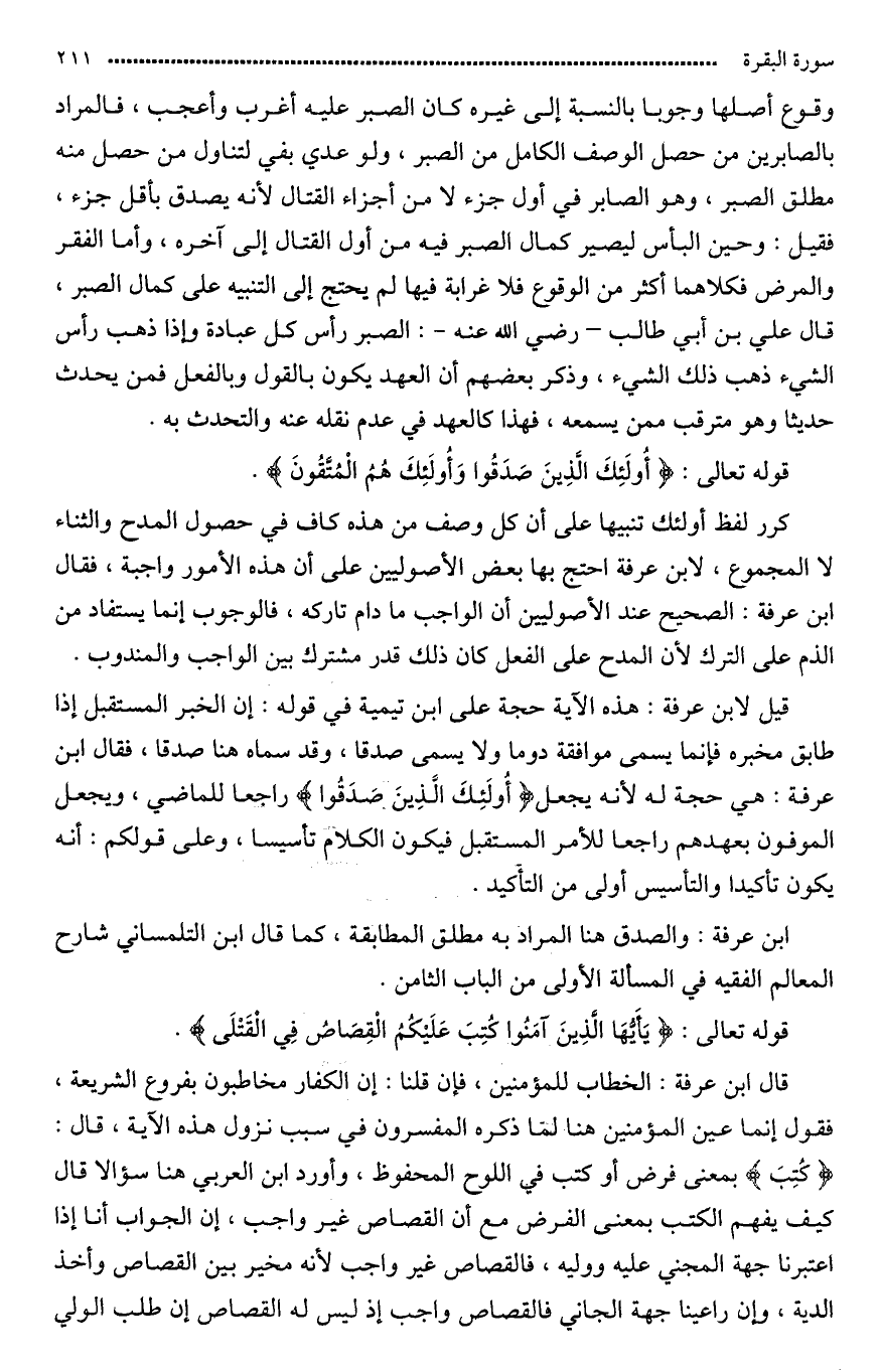 قال ابن عرفة: والجواب أنّا إذا اعتبرنا جهة المجني عليه ووليه فالقصاص غير واجب لأنه مخير بين القصاص وأخذ الدية، وإذا راعينا جهة الجاني فالقصاص غير (واجب). إن طلب الولي