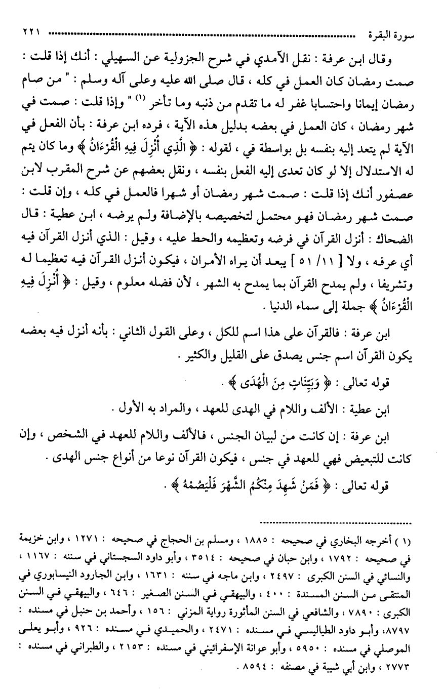 قال ابن عرفة: يرد بأن الفعل في الآية لم يتعد إليه بنفسه بل بواسطة «في» لقوله {الذي أُنْزِلَ فِيهِ القرآن} وما كان يتم له