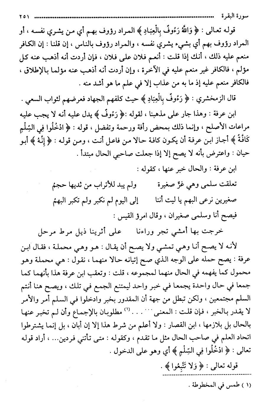 قال ابن عرفة: وهذا جار على مذهبنا لقوله «رؤوف» (فدل على) أَنّه لاَ يَجِبُ عليه مراعاة الأصلح وإنما ذلك محض (رأفة ورحمة) وتفضل.