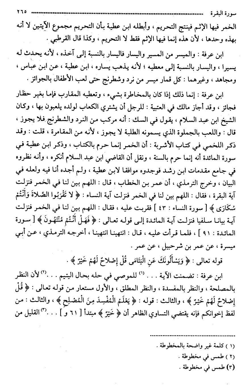 ابن عطية: عن ابن عباس ومجاهد رَضِيَ اللَّهُ عَنْهم وغيرهما: كل قمار ميسر من نرد وشطرنج حتى لعب الأطفال بالجوز.