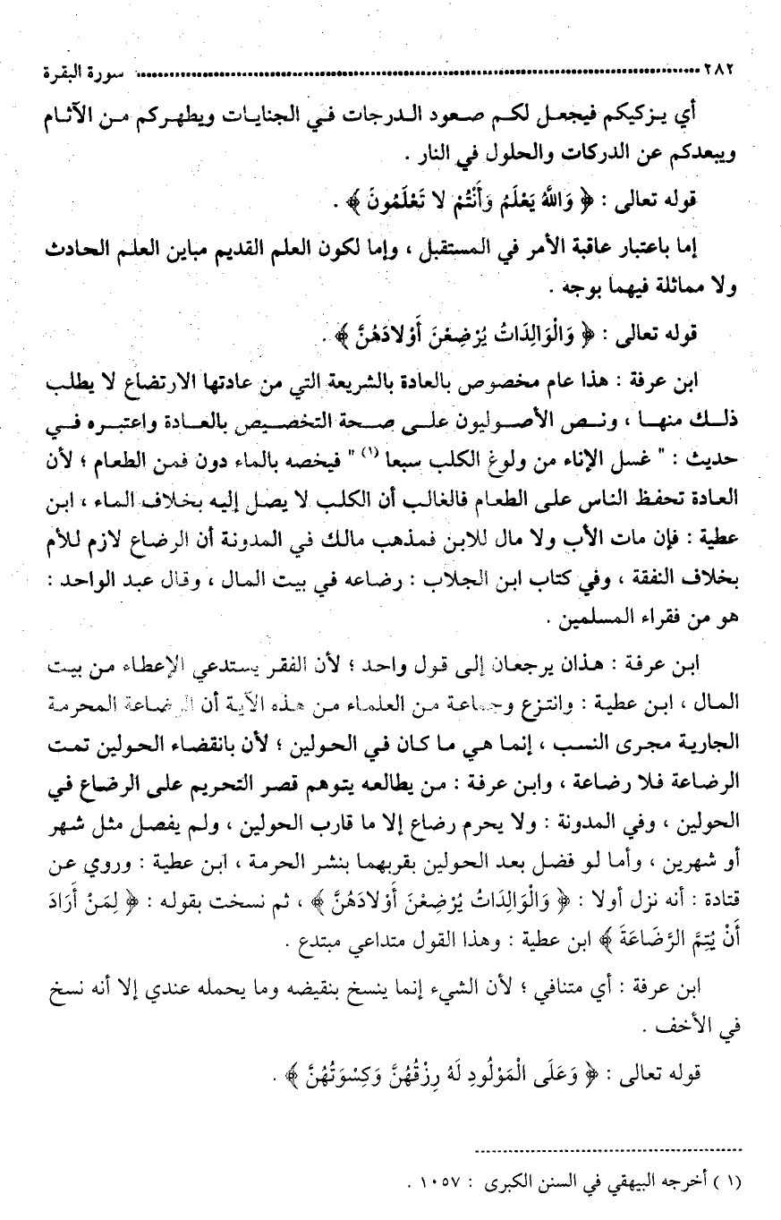 قال ابن عطية: وانتزعه مالك وجماعة من العلماء من هذه الآية أنّ الرّضاعة المحرمة الجارية مجرى النّسب إنّما هي ما كان في الحولين لأن بانقضاء الحولين تمت الرضاعة فلا رضاعة.