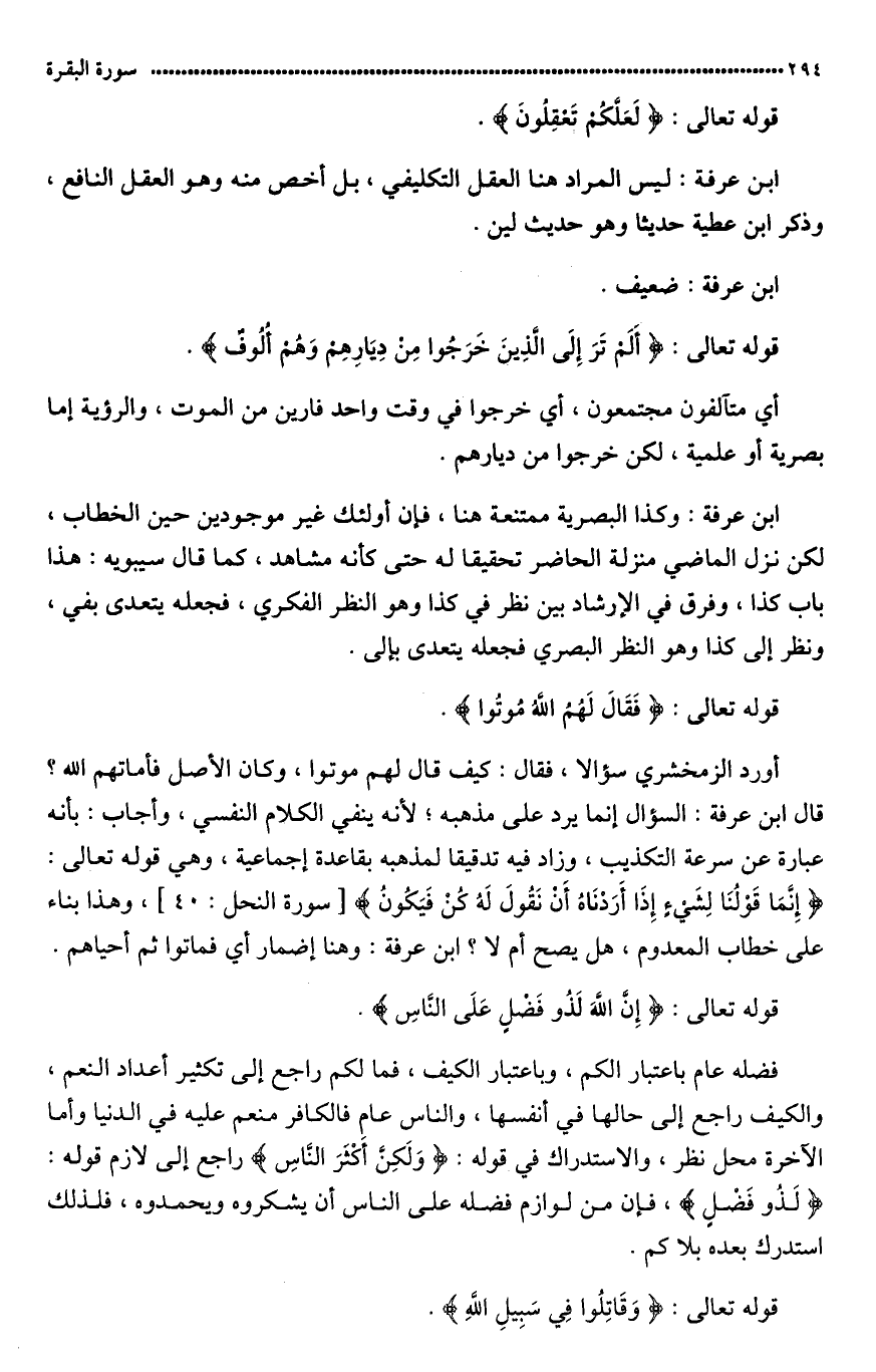 قال ابن عرفة: ليس المراد هنا العقل التكليفي بل أخص منه وهو العقل النافع. وذكر ابن عطية حديثا وقال هو حديث لين.