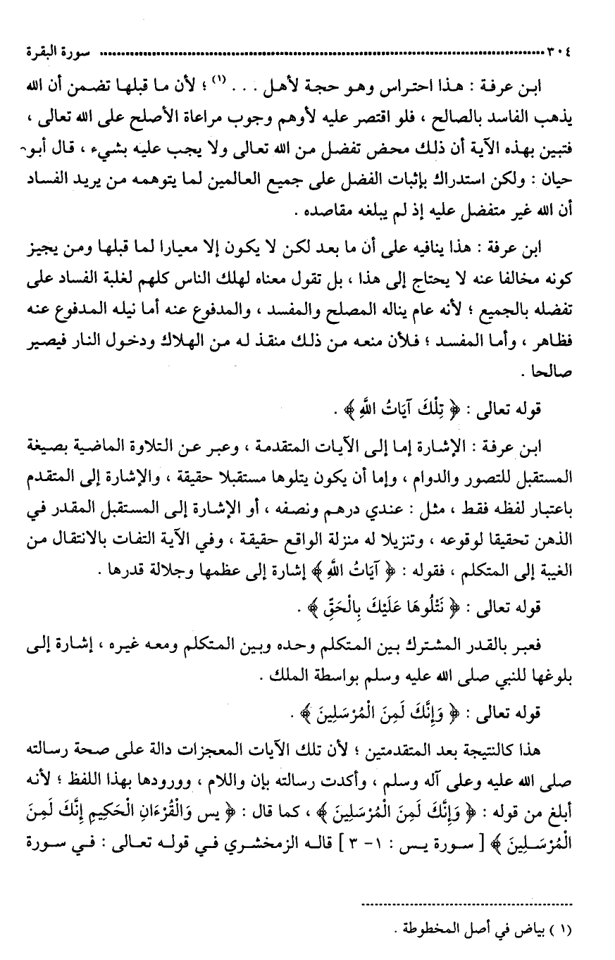 قال ابن عرفة: هذا احتراس وهو حجة لأهل السنة لأن ما قبلها تضمّن أنّ الله تعالى يذهب الفاسد بالصالح فلو اقتصر عليه لأوهم وجوب مراعاة الأصلح على الله تعالى فبين بهذه الآية أن ذلك محض تفضل من الله تعالى ولا يجب عليه شيء.