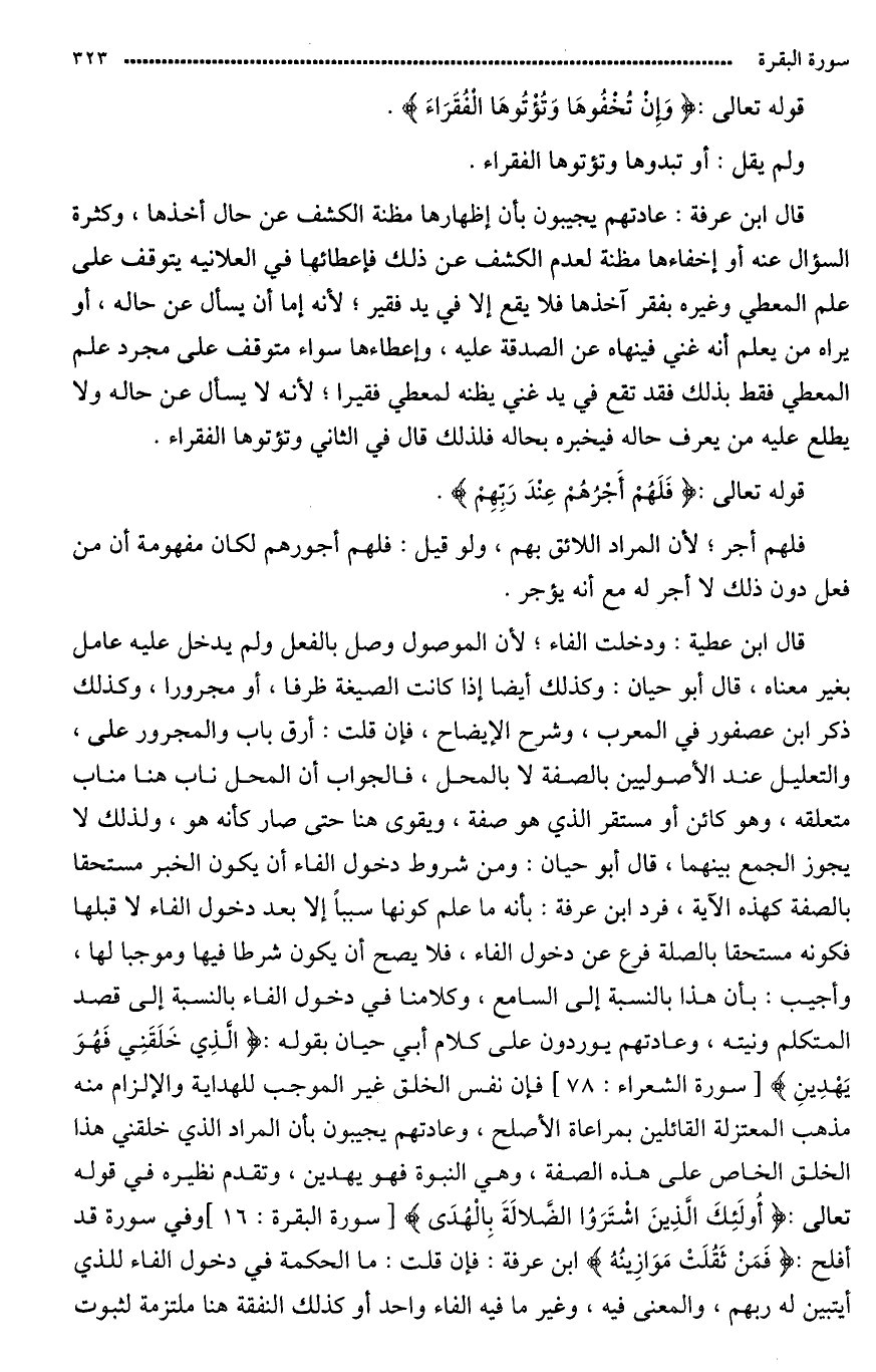 قال ابن عرفة: لم يقل أو تبدوها وَتُؤْتُوهَا الفُقَرَاءَ.