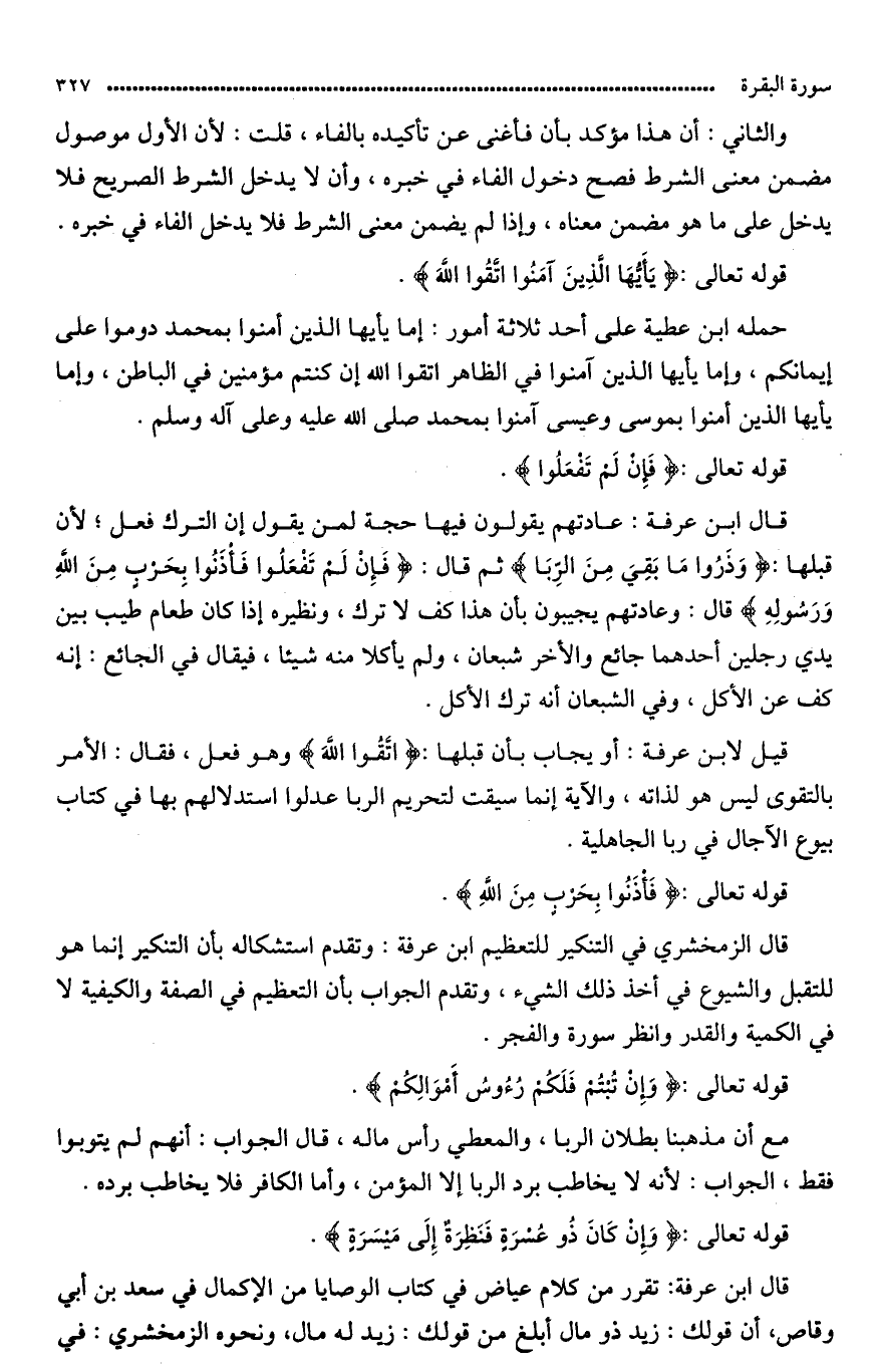 فقال: الأمر بالتقوى ليس هو لذاته والآية إنّما سبقت لتحريم الرّبا بدليل استدلالهم بها في كتاب بيوع الآجال في ربا الجاهلية.