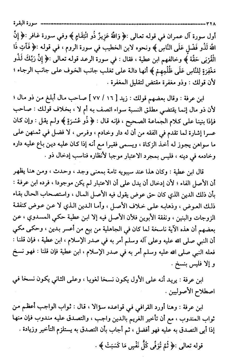 قال: وهنا أورد القرافي (في قواعده) سؤالا قال: ثواب الواجب أعظم من ثواب المندوب مع أن تأخير الغريم بالدّين واجب والتصدق عليه مندوب والآية نص في أنّ التصدق عليه بن أفضل، ثم أجاب التصدق به يستلزم التأخير وزيادة.