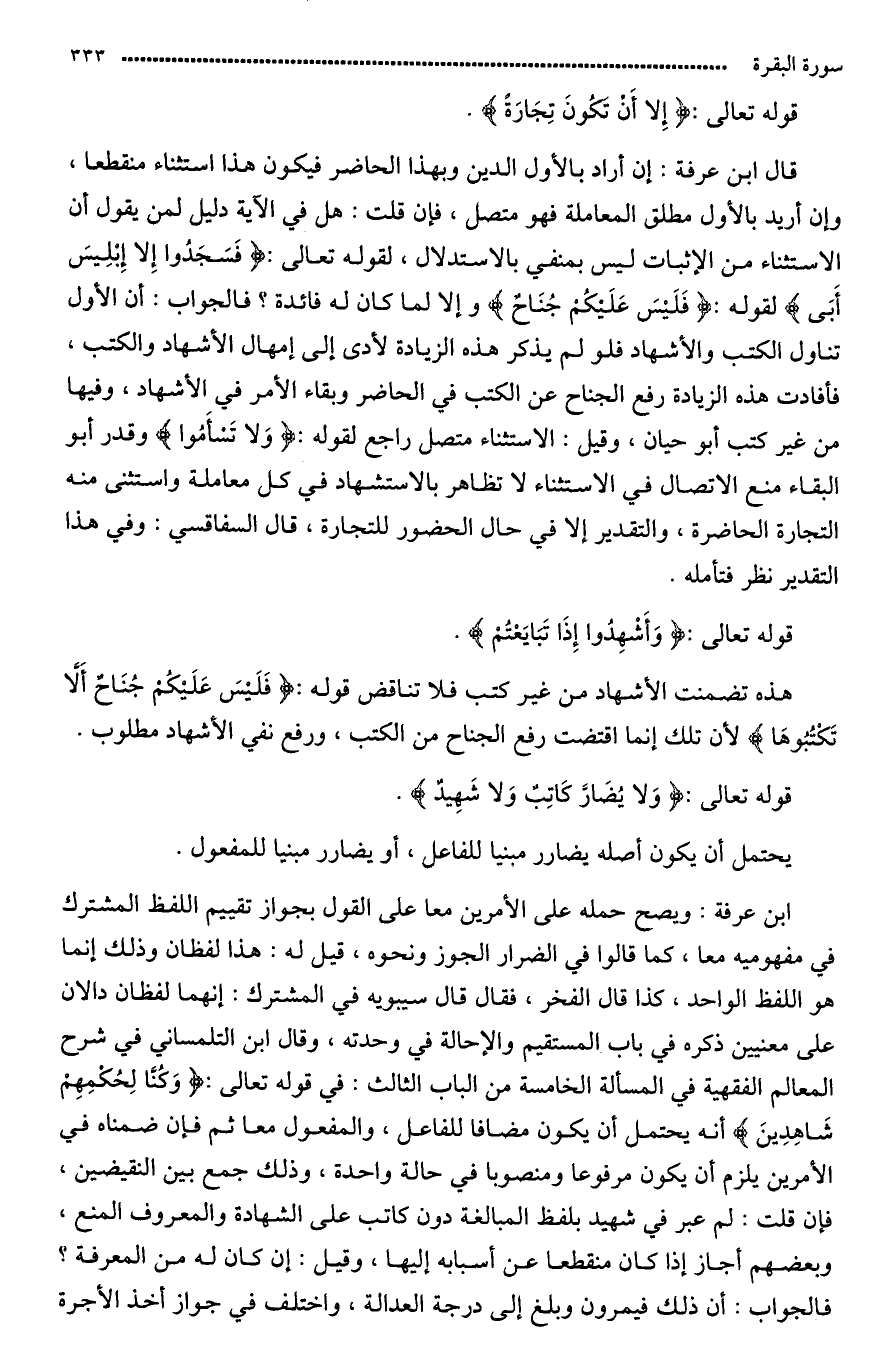 فقال ابن عرفة: قد قال سيبويه في المشترك إنهما لفظان دالاّن على معنيين. ذكره في باب المستقيم والإحالة في (وجدت).