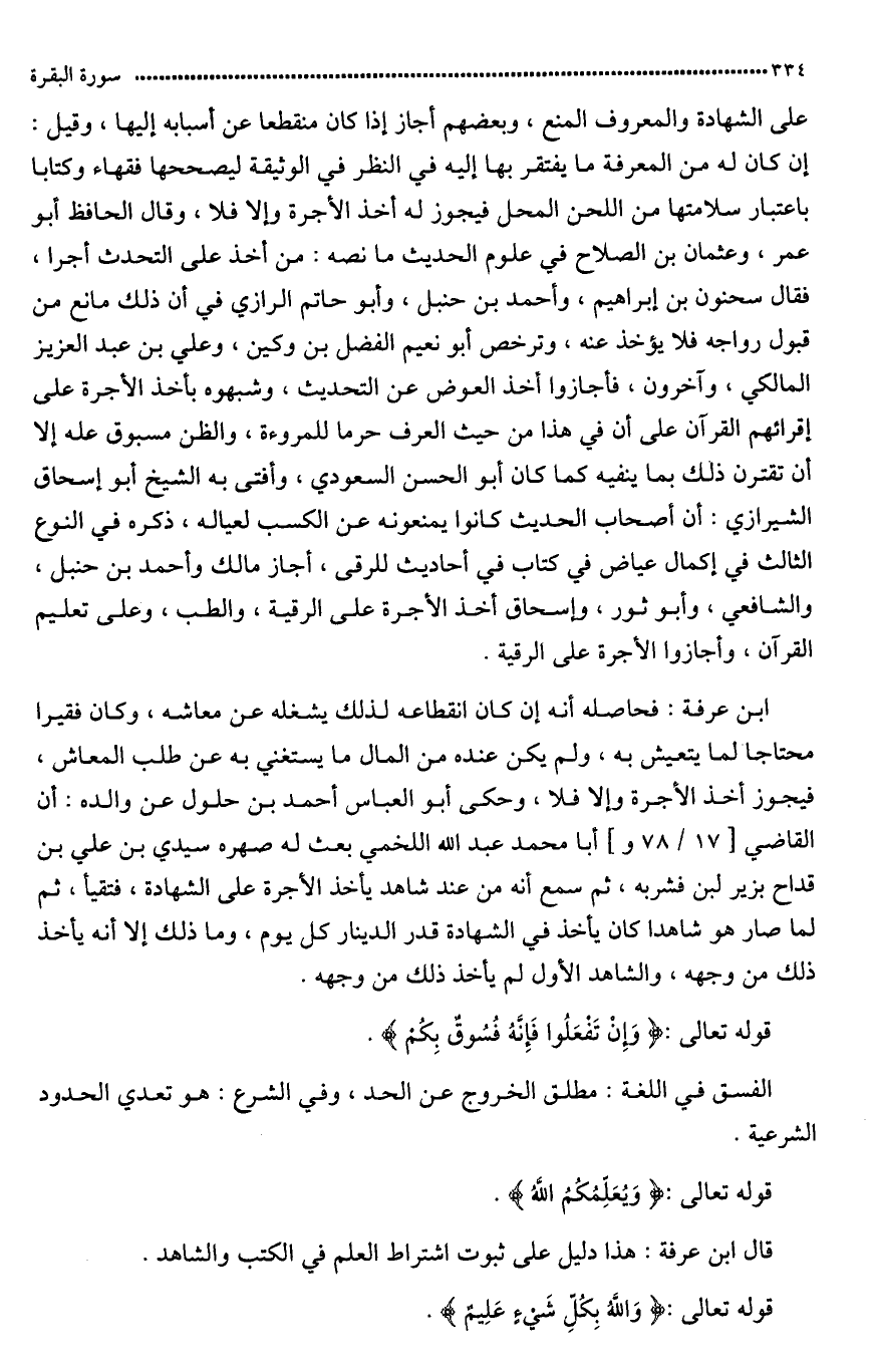 قال ابن عرفة: هذا دليل على ثبوت اشتراط العلم في الكاتب والشاهد.