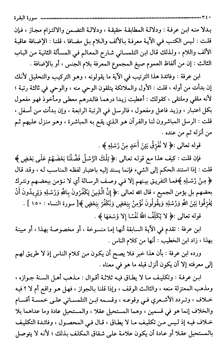 ابن عرفة: تقدم في الآية السابقة أنّها (إما) منسوخة او مخصوصة بهذا أو مبيّنة بهذا.
