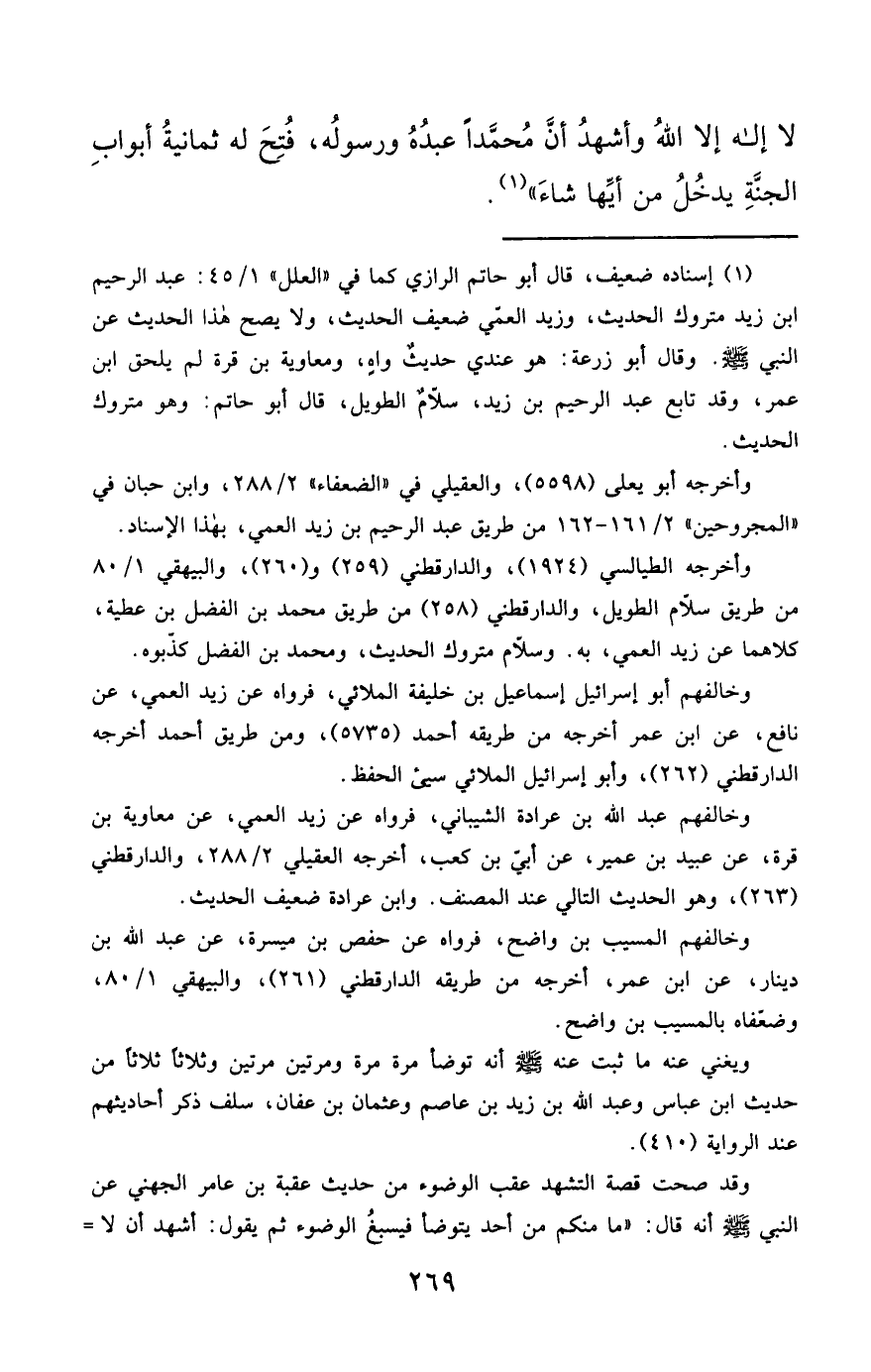 لَا إِلَهَ إِلَّا اللَّهُ، وَأَشْهَدُ أَنَّ مُحَمَّدًا عَبْدُهُ وَرَسُولُهُ، فُتِحَ لَهُ ثَمَانِيَةُ أَبْوَابِ الْجَنَّةِ، يَدْخُلُ مِنْ أَيِّهَا شَاءَ" (¬1).