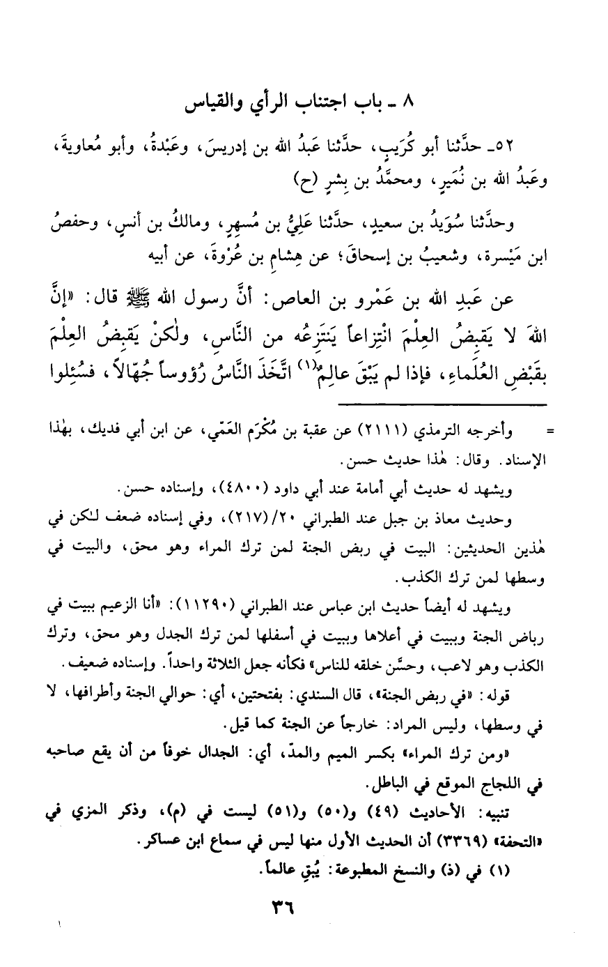 8- بَابُ اجْتِنَابِ الرَّأْيِ وَالْقِيَاسِ