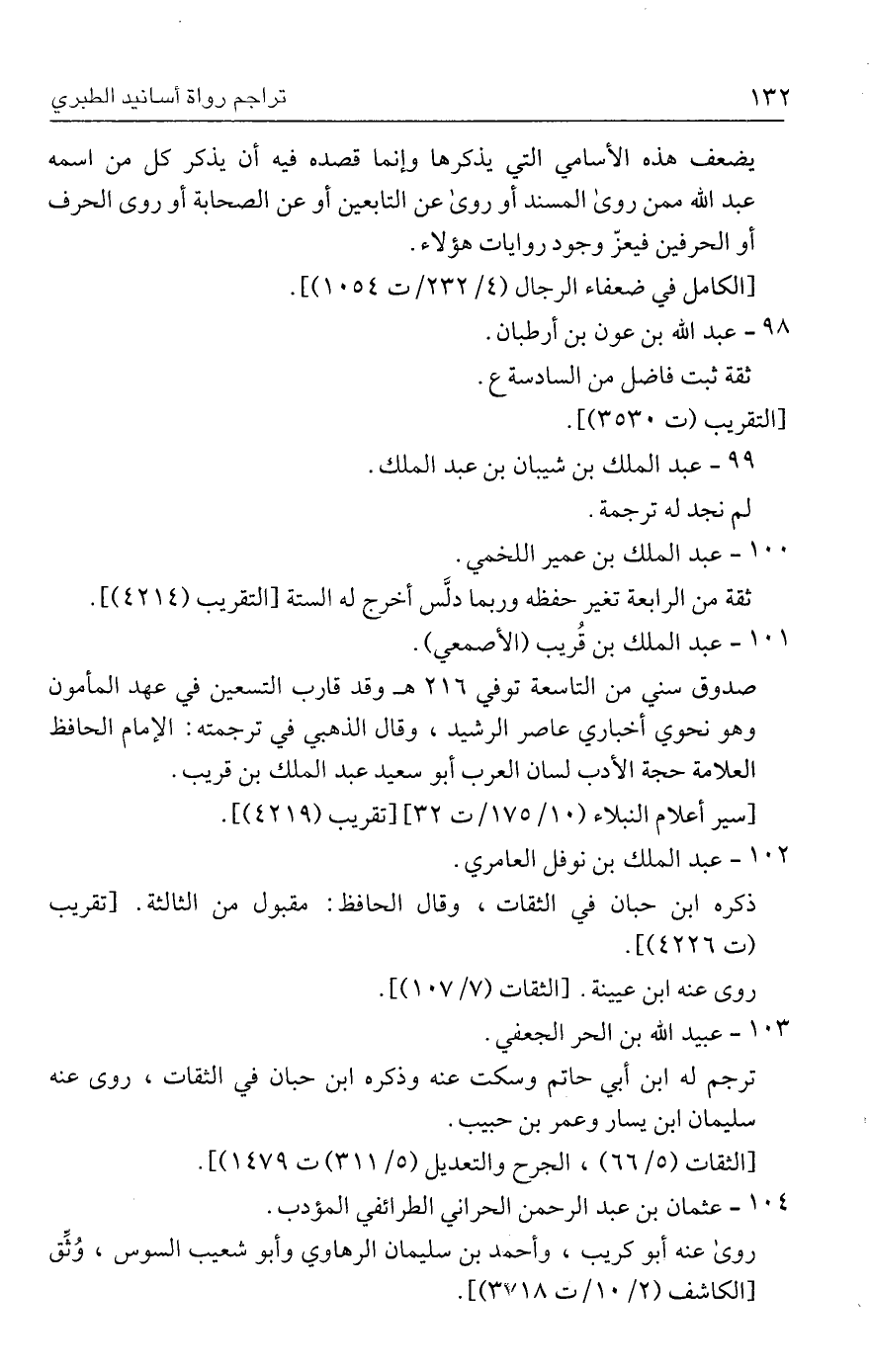 يضعف هذه الأسامي التي يذكرها وإنما قصده فيه أن يذكر كل من اسمه عبد الله ممن روى المسند أو روى عن التابعين أو عن الصحابة أو روى الحرف أو الحرفين فيعزّ وجود روايات هؤلاء.