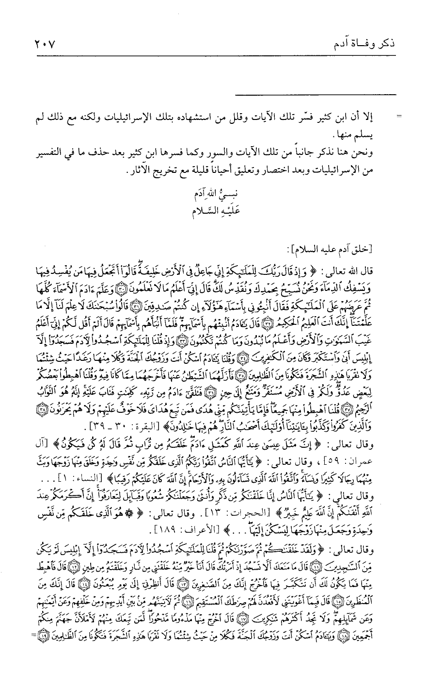 وقال تعالى: {إِنَّ مَثَلَ عِيسَى عِنْدَ اللَّهِ كَمَثَلِ آدَمَ خَلَقَهُ مِنْ تُرَابٍ ثُمَّ قَال لَهُ كُنْ فَيَكُونُ} [آل عمران: ٥٩]، وقال تعالى: {يَا أَيُّهَا النَّاسُ اتَّقُوا رَبَّكُمُ الَّذِي خَلَقَكُمْ مِنْ نَفْسٍ وَاحِدَةٍ وَخَلَقَ مِنْهَا زَوْجَهَا وَبَثَّ مِنْهُمَا رِجَالًا كَثِيرًا وَنِسَاءً وَاتَّقُوا اللَّهَ الَّذِي تَسَاءَلُونَ بِهِ وَالْأَرْحَامَ إِنَّ اللَّهَ كَانَ عَلَيكُمْ رَقِيبًا} [النساء: ١] ...