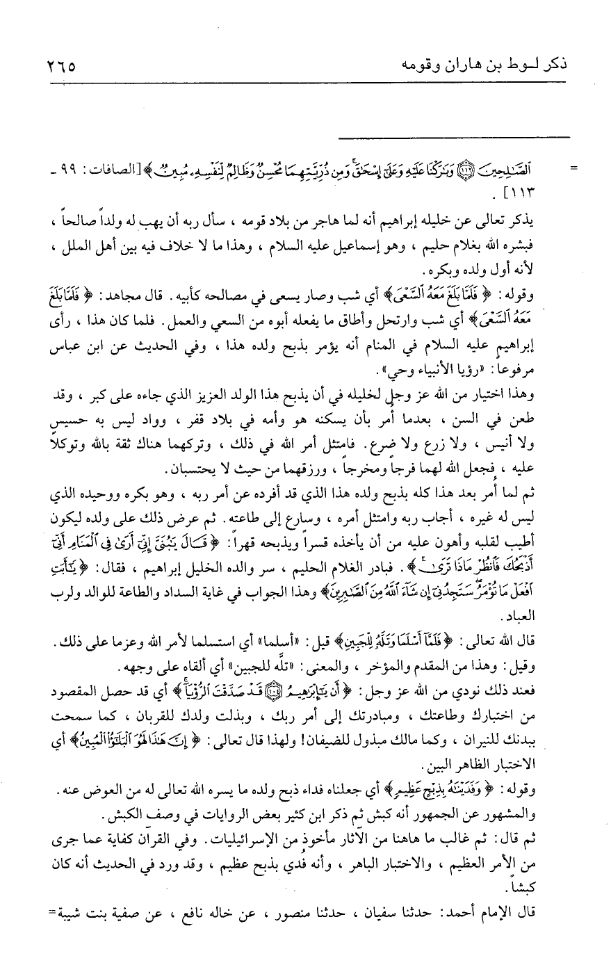= الصَّالِحِينَ (١١٢) وَبَارَكْنَا عَلَيهِ وَعَلَى إِسْحَاقَ وَمِنْ ذُرِّيَّتِهِمَا مُحْسِنٌ وَظَالِمٌ لِنَفْسِهِ مُبِينٌ} [الصافات: ٩٩ - ١١٣].