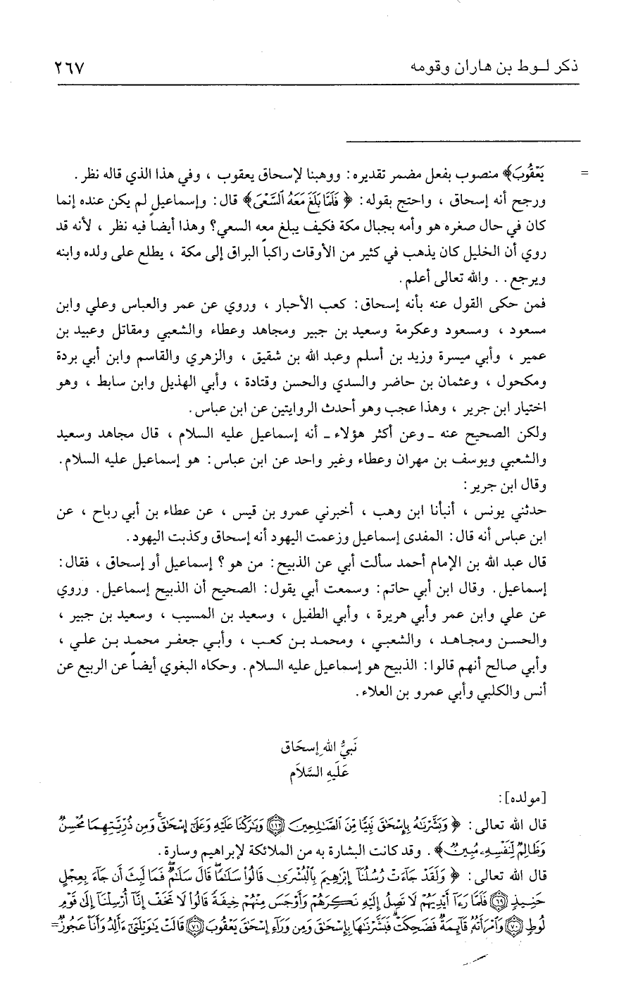 ولكن الصحيح عنه -وعن أكثر هؤلاء- أنه إسماعيل - عليه السلام -، قال مجاهد وسعيد والشعبي ويوسف بن مهران وعطاء وغير واحد عن ابن عباس: هو إسماعيل - عليه السلام -.