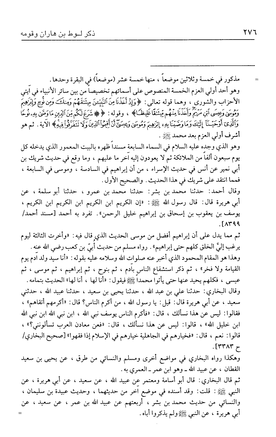 ثم مما يدل على أن إبراهيم أفضل من موسى الحديث الذي قال فيه: "وأخرت الثالثة ليوم يرغب إليَّ الخلق كلهم حتى إبراهيم". رواه مسلم من حديث أُبيّ بن كعب رضي الله عنه.