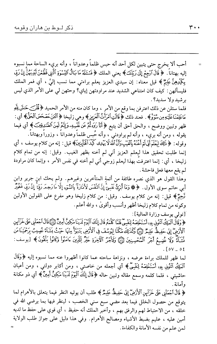 وهذا القول هو الذي نصره طائفة من أئمةِ المتأخرين وغيرهم. ولم يحك ابن جرير وابن أبي حاتم سوى الأول. {وَمَا أُبَرِّئُ نَفْسِي إِنَّ النَّفْسَ لَأَمَّارَةٌ بِالسُّوءِ إلا مَا رَحِمَ رَبِّي إِنَّ رَبِّي غَفُورٌ رَحِيمٌ} قيل: إنه من كلام يوسف. وقيل: من كلام زليخا وهو مفرع على القولين الأولين وكونه من تمام كلام زليخا أظهر وأنسب وأقوى، والله أعلم.