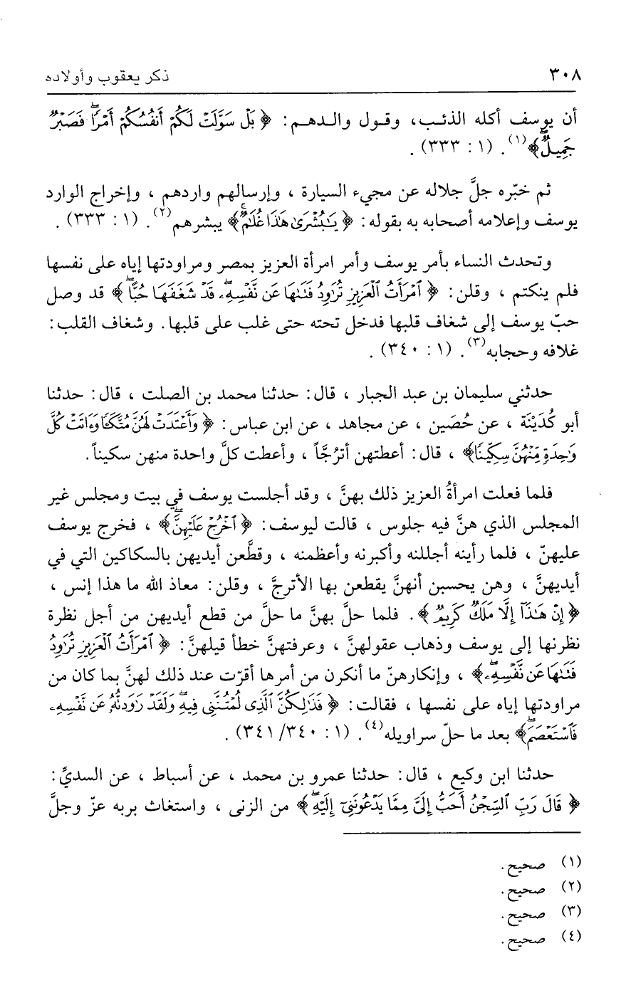 أن يوسف أكله الذئب، وقول والدهم: {بَلْ سَوَّلَتْ لَكُمْ أَنْفُسُكُمْ أَمْرًا فَصَبْرٌ جَمِيلٌ} (١). (١: ٣٣٣).