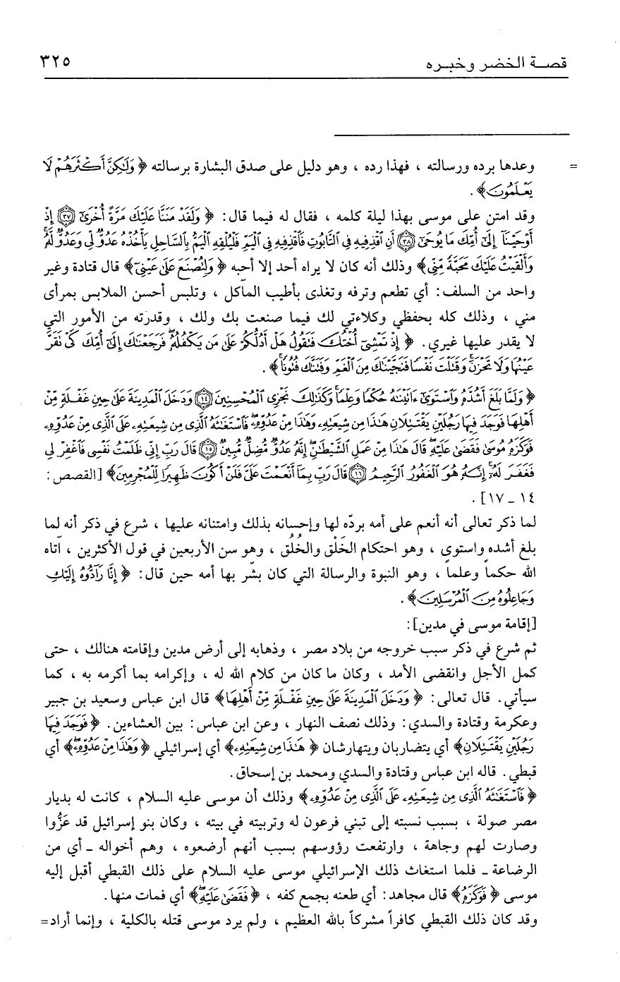 {وَلَمَّا بَلَغَ أَشُدَّهُ وَاسْتَوَى آتَينَاهُ حُكْمًا وَعِلْمًا وَكَذَلِكَ نَجْزِي الْمُحْسِنِينَ (١٤) وَدَخَلَ الْمَدِينَةَ عَلَى حِينِ غَفْلَةٍ مِنْ أَهْلِهَا فَوَجَدَ فِيهَا رَجُلَينِ يَقْتَتِلَانِ هَذَا مِنْ شِيعَتِهِ وَهَذَا مِنْ عَدُوِّهِ فَاسْتَغَاثَهُ الَّذِي مِنْ شِيعَتِهِ عَلَى الَّذِي مِنْ عَدُوِّهِ فَوَكَزَهُ مُوسَى فَقَضَى عَلَيهِ قَال هَذَا مِنْ عَمَلِ الشَّيطَانِ إِنَّهُ عَدُوٌّ مُضِلٌّ مُبِينٌ (١٥) قَال رَبِّ إِنِّي ظَلَمْتُ نَفْسِي فَاغْفِرْ لِي فَغَفَرَ لَهُ إِنَّهُ هُوَ الْغَفُورُ الرَّحِيمُ (١٦) قَال رَبِّ بِمَا أَنْعَمْتَ عَلَيَّ فَلَنْ أَكُونَ ظَهِيرًا لِلْمُجْرِمِينَ} [القصص: ١٤ - ١٧].