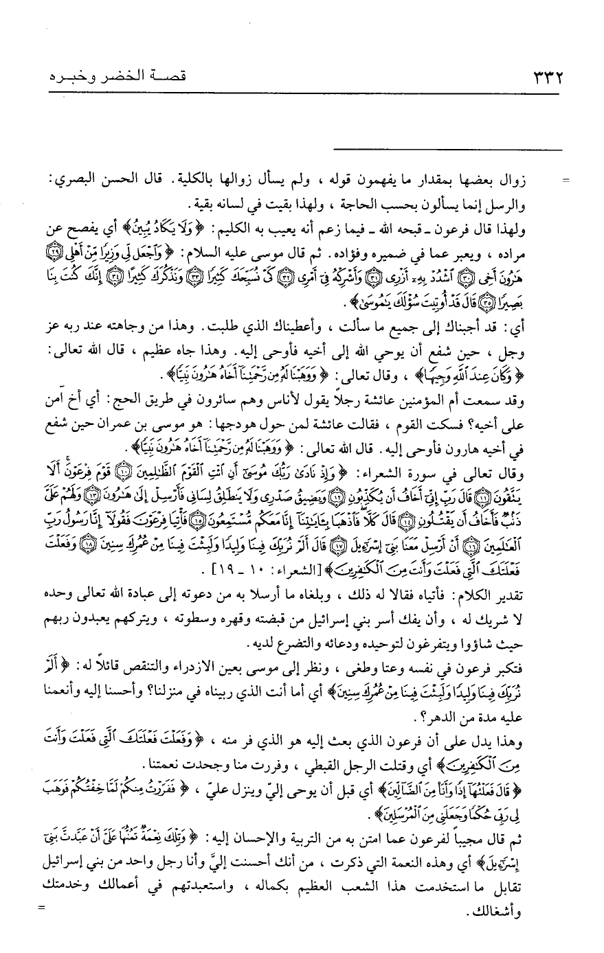 ولهذا قال فرعون - قبحه الله - فيما زعم أنه يعيب به الكليم: {وَلَا يَكَادُ يُبِينُ} أي يفصح عن مراده، ويعبر عما في ضميره وفؤاده. ثم قال موسى - عليه السلام -: {وَاجْعَلْ لِي وَزِيرًا مِنْ أَهْلِي (٢٩) هَارُونَ أَخِي (٣٠) اشْدُدْ بِهِ أَزْرِي (٣١) وَأَشْرِكْهُ فِي أَمْرِي (٣٢) كَي نُسَبِّحَكَ كَثِيرًا (٣٣) وَنَذْكُرَكَ كَثِيرًا (٣٤) إِنَّكَ كُنْتَ بِنَا بَصِيرًا (٣٥) قَال قَدْ أُوتِيتَ سُؤْلَكَ يَامُوسَى}.