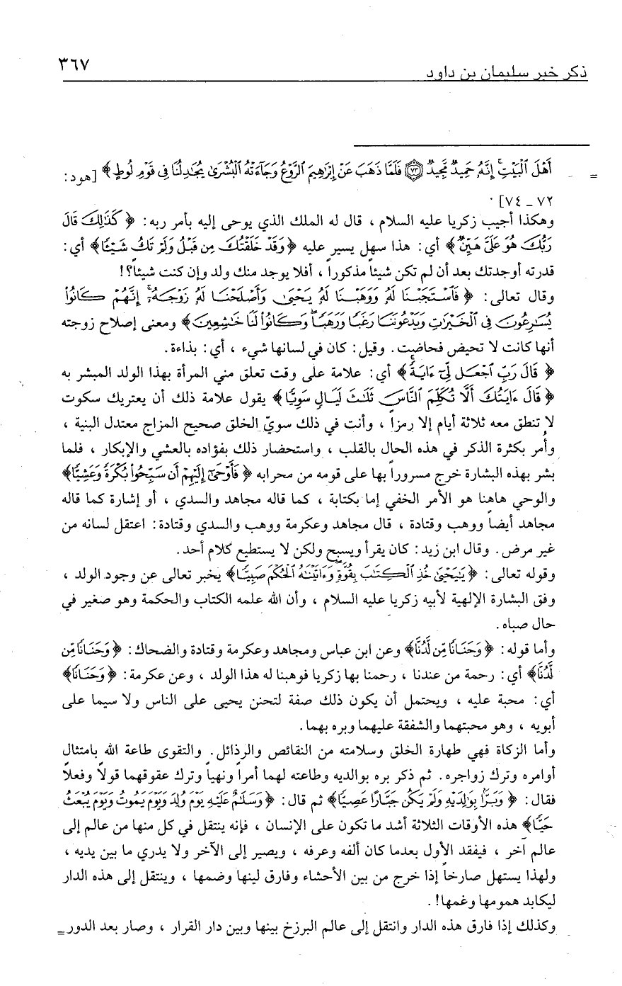 وقوله تعالى: {يَايَحْيَى خُذِ الْكِتَابَ بِقُوَّةٍ وَآتَينَاهُ الْحُكْمَ صَبِيًّا} يخبر تعالى عن وجود الولد، وفق البشارة الإلهية لأبيه زكريا - عليه السلام -، وأن الله علمه الكتاب والحكمة وهو صغير في حال صباه.