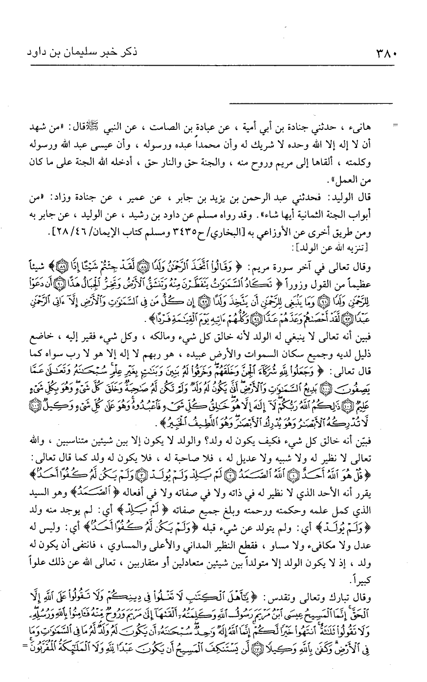 وقال تبارك وتعالى وتقدس: {يَاأَهْلَ الْكِتَابِ لَا تَغْلُوا فِي دِينِكُمْ وَلَا تَقُولُوا عَلَى اللَّهِ إلا الْحَقَّ إِنَّمَا الْمَسِيحُ عِيسَى ابْنُ مَرْيَمَ رَسُولُ اللَّهِ وَكَلِمَتُهُ أَلْقَاهَا إِلَى مَرْيَمَ وَرُوحٌ مِنْهُ فَآمِنُوا بِاللَّهِ وَرُسُلِهِ وَلَا تَقُولُوا ثَلَاثَةٌ انْتَهُوا خَيرًا لَكُمْ إِنَّمَا اللَّهُ إِلَهٌ وَاحِدٌ سُبْحَانَهُ أَنْ يَكُونَ لَهُ وَلَدٌ لَهُ مَا فِي السَّمَاوَاتِ وَمَا فِي الْأَرْضِ وَكَفَى بِاللَّهِ وَكِيلًا (١٧١) لَنْ يَسْتَنْكِفَ الْمَسِيحُ أَنْ يَكُونَ عَبْدًا لِلَّهِ وَلَا الْمَلَائِكَةُ الْمُقَرَّبُونَ =