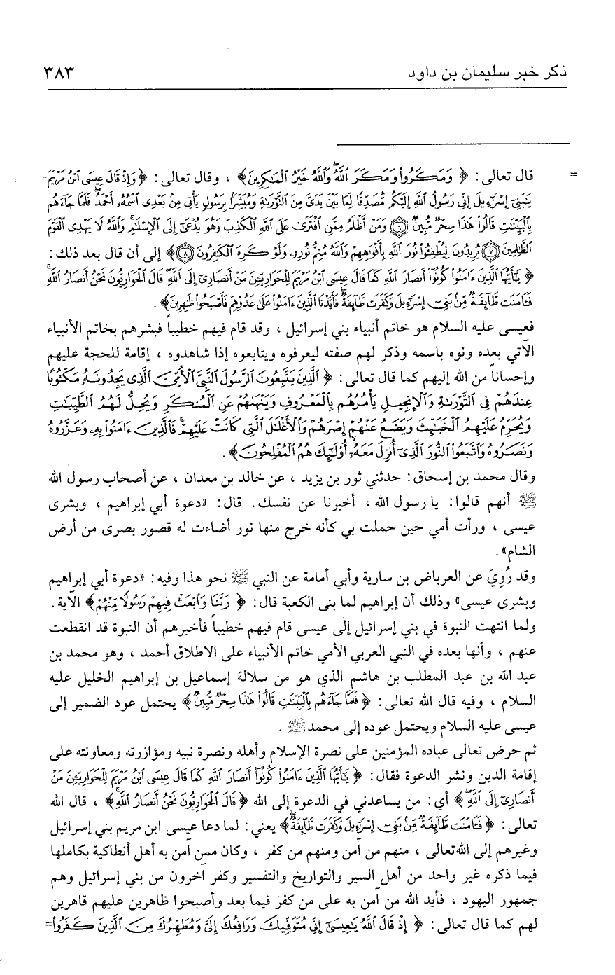 = قال تعالى: {وَمَكَرُوا وَمَكَرَ اللَّهُ وَاللَّهُ خَيرُ الْمَاكِرِينَ}، وقال تعالى: {وَإِذْ قَال عِيسَى ابْنُ مَرْيَمَ يَابَنِي إِسْرَائِيلَ إِنِّي رَسُولُ اللَّهِ إِلَيكُمْ مُصَدِّقًا لِمَا بَينَ يَدَيَّ مِنَ التَّوْرَاةِ وَمُبَشِّرًا بِرَسُولٍ يَأْتِي مِنْ بَعْدِي اسْمُهُ أَحْمَدُ فَلَمَّا جَاءَهُمْ بِالْبَيِّنَاتِ قَالُوا هَذَا سِحْرٌ مُبِينٌ (٦) وَمَنْ أَظْلَمُ مِمَّنِ افْتَرَى عَلَى اللَّهِ الْكَذِبَ وَهُوَ يُدْعَى إِلَى الْإِسْلَامِ وَاللَّهُ لَا يَهْدِي الْقَوْمَ الظَّالِمِينَ (٧) يُرِيدُونَ لِيُطْفِئُوا نُورَ اللَّهِ بِأَفْوَاهِهِمْ وَاللَّهُ مُتِمُّ نُورِهِ وَلَوْ كَرِهَ الْكَافِرُونَ (٨)} إلى أن قال بعد ذلك: {يَا أَيُّهَا الَّذِينَ آمَنُوا كُونُوا أَنْصَارَ اللَّهِ كَمَا قَال عِيسَى ابْنُ مَرْيَمَ لِلْحَوَارِيِّينَ مَنْ أَنْصَارِي إِلَى اللَّهِ قَال الْحَوَارِيُّونَ نَحْنُ أَنْصَارُ اللَّهِ فَآمَنَتْ طَائِفَةٌ مِنْ بَنِي إِسْرَائِيلَ وَكَفَرَتْ طَائِفَةٌ فَأَيَّدْنَا الَّذِينَ آمَنُوا عَلَى عَدُوِّهِمْ فَأَصْبَحُوا ظَاهِرِينَ}.