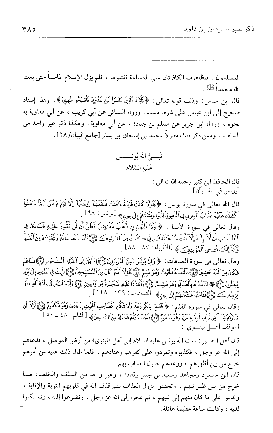 وقال تعالى في سورة الأنبياء: {وَذَا النُّونِ إِذْ ذَهَبَ مُغَاضِبًا فَظَنَّ أَنْ لَنْ نَقْدِرَ عَلَيهِ فَنَادَى فِي الظُّلُمَاتِ أَنْ لَا إِلَهَ إلا أَنْتَ سُبْحَانَكَ إِنِّي كُنْتُ مِنَ الظَّالِمِينَ (٨٧) فَاسْتَجَبْنَا لَهُ وَنَجَّينَاهُ مِنَ الْغَمِّ وَكَذَلِكَ نُنْجِي الْمُؤْمِنِينَ} [الأنبياء: ٨٧ - ٨٨].