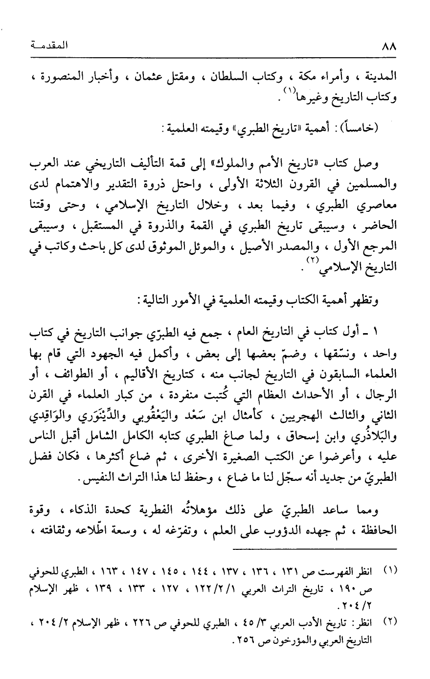 (٢) انظر: تاريخ الأدب العربي ٣/ ٤٥، الطبري للحوفي ص ٢٢٦، ظهر الإسلام ٢/ ٢٠٤، التاريخ العربي والمؤرخون ص ٢٥٦.