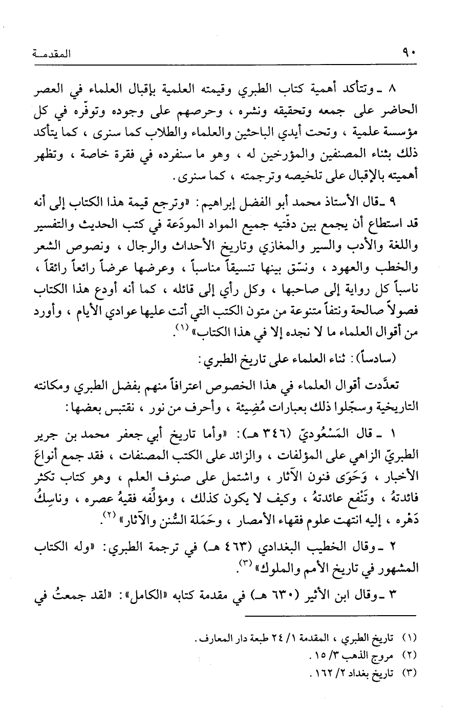 (١) تاريخ الطبري، المقدمة ١/ ٢٤ طبعة دار المعارف.