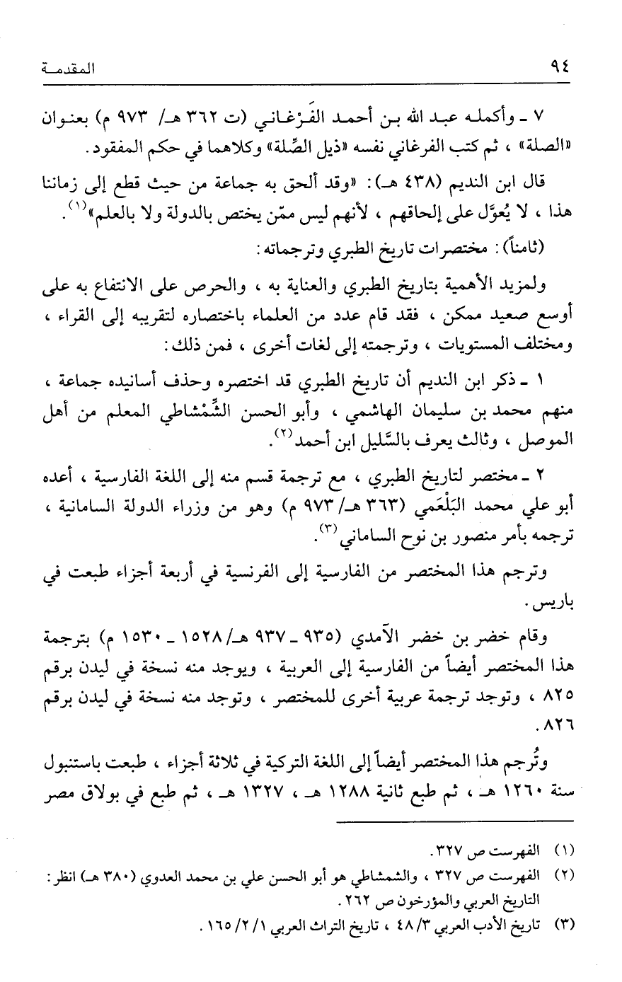 (ثامنًا): مختصرات تاريخ الطبري وترجماته: