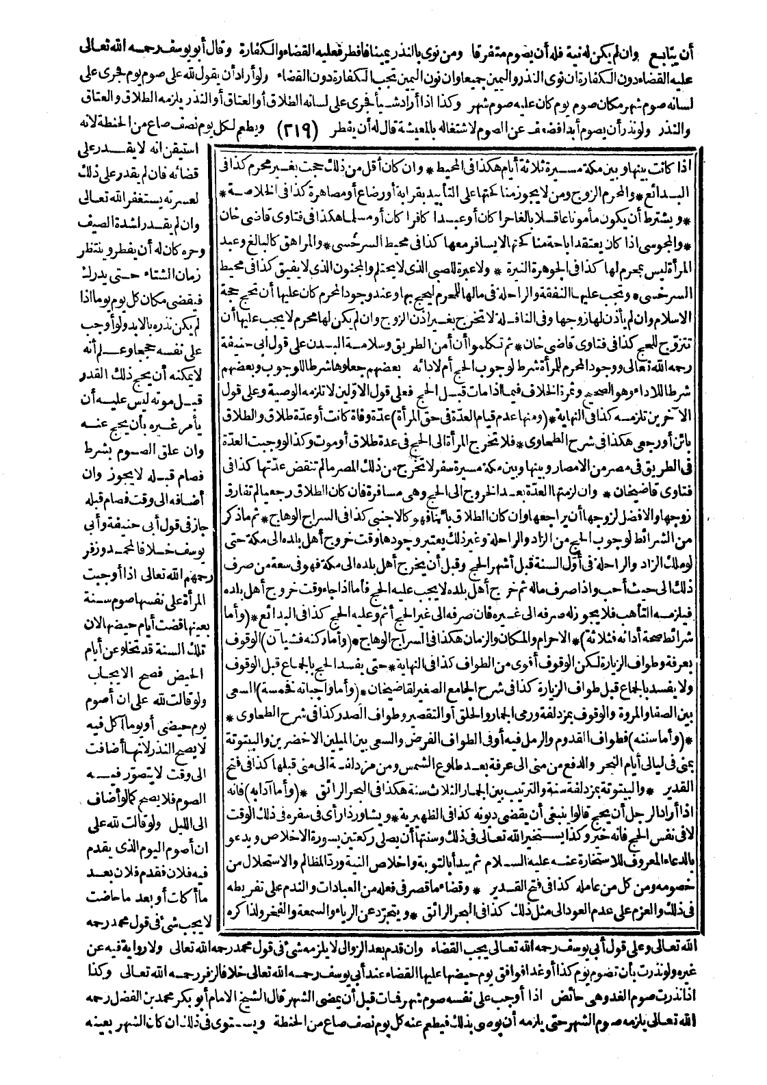 (وَمِنْهَا عَدَمُ قِيَامِ الْعِدَّةِ فِي حَقِّ الْمَرْأَةِ) عِدَّةَ وَفَاةٍ كَانَتْ أَوْ عِدَّةَ طَلَاقٍ، وَالطَّلَاقُ بَائِنٌ أَوْ رَجْعِيٌّ هَكَذَا فِي شَرْحِ الطَّحَاوِيِّ فَلَا تَخْرُجُ الْمَرْأَةُ إلَى الْحَجِّ فِي عِدَّةِ طَلَاقٍ أَوْ مَوْتٍ، وَكَذَا لَوْ وَجَبَتْ الْعِدَّةُ فِي الطَّرِيقِ فِي مِصْرٍ مِنْ الْأَمْصَارِ وَبَيْنَهَا وَبَيْنَ مَكَّةَ مَسِيرَةُ سَفَرٍ لَا تَخْرُجُ مِنْ ذَلِكَ الْمِصْرِ مَا لَمْ تَنْقَضِ عِدَّتُهَا، كَذَا فِي فَتَاوَى قَاضِي خَانْ وَإِنْ لَزِمَتْهَا الْعِدَّةُ بَعْدَ الْخُرُوجِ إلَى الْحَجِّ، وَهِيَ مُسَافِرَةٌ فَإِنْ كَانَ الطَّلَاقُ رَجْعِيًّا لَمْ تُفَارِقْ زَوْجَهَا وَالْأَفْضَلُ لِزَوْجِهَا أَنْ يُرَاجِعَهَا، وَإِنْ كَانَ الطَّلَاقُ بَائِنًا فَهُوَ كَالْأَجْنَبِيِّ، كَذَا فِي السِّرَاجِ الْوَهَّاجِ.
