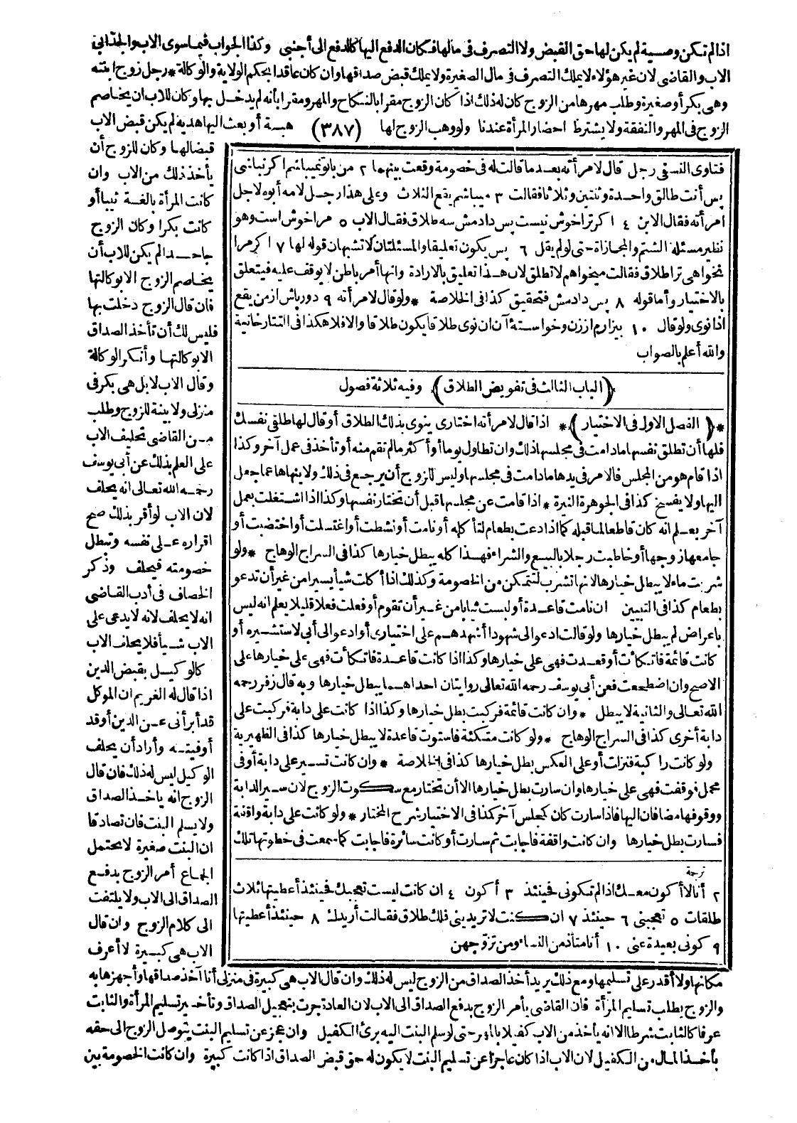 [الْبَابُ الثَّالِثُ فِي تَفْوِيضِ الطَّلَاقِ وَفِيهِ ثَلَاثَةُ فُصُولٍ]