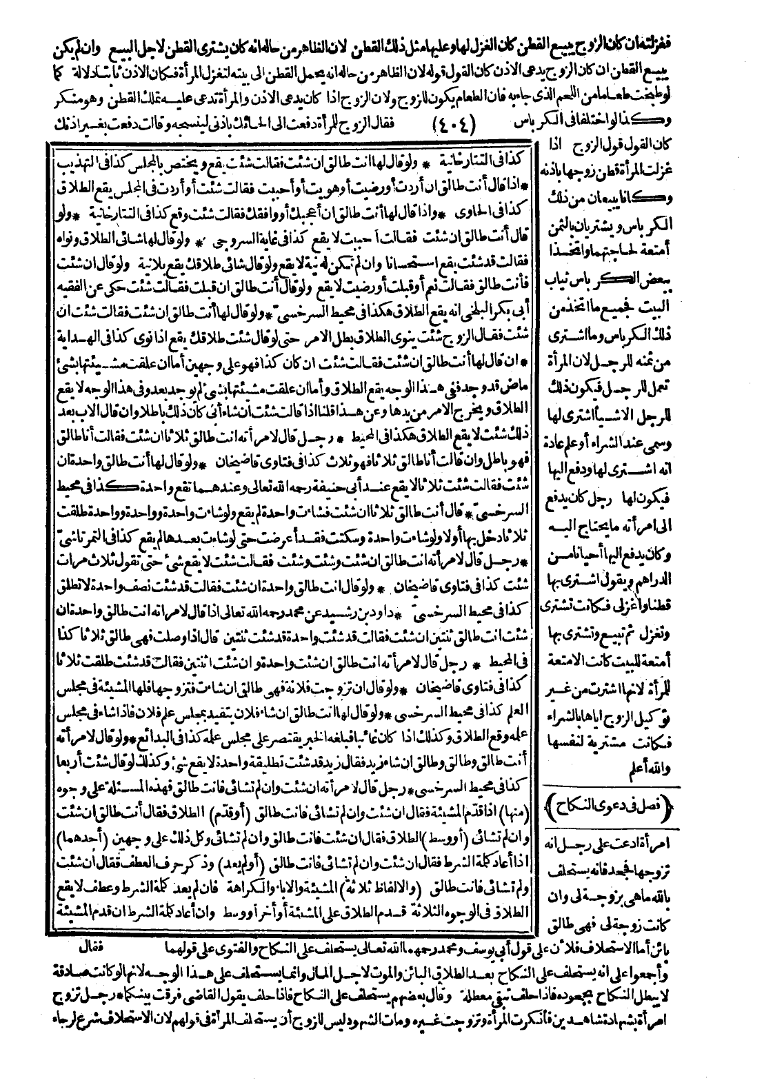 رَجُلٌ قَالَ لِامْرَأَتِهِ: إنْ شِئْتِ وَإِنْ لَمْ تَشَائِي فَأَنْت طَالِقٌ فَهَذِهِ الْمَسْأَلَةُ عَلَى وُجُوهٍ: (مِنْهَا) إذَا قَدَّمَ الْمَشِيئَةَ فَقَالَ: إنْ شِئْتِ وَإِنْ لَمْ تَشَائِي فَأَنْتِ طَالِقٌ، (أَوْ قَدَّمَ) الطَّلَاقَ فَقَالَ: أَنْتِ طَالِقٌ إنْ شِئْتِ وَإِنْ لَمْ تَشَائِي، (أَوْ وَسَّطَ) الطَّلَاقَ فَقَالَ إنْ شِئْتِ فَأَنْتِ طَالِقٌ وَإِنْ لَمْ تَشَائِي وَكُلُّ ذَلِكَ عَلَى وَجْهَيْنِ: (أَحَدُهُمَا) إذَا أَعَادَ كَلِمَةَ الشَّرْطِ فَقَالَ: إنْ شِئْتِ وَإِنْ لَمْ تَشَائِي فَأَنْتِ طَالِقٌ، (أَوْ لَمْ يُعِدْ) وَذَكَرَ حَرْفَ الْعَطْفِ فَقَالَ: إنْ شِئْتِ وَلَمْ تَشَائِي فَأَنْتِ طَالِقٌ، (وَالْأَلْفَاظُ ثَلَاثَةٌ) : الْمَشِيئَةُ وَالْإِبَاءُ وَالْكَرَاهَةُ فَإِنْ لَمْ يُعِدْ كَلِمَةَ الشَّرْطِ وَعَطَفَ لَا يَقَعُ الطَّلَاقُ فِي الْوُجُوهِ الثَّلَاثَةِ قَدَّمَ الطَّلَاقَ عَلَى الْمَشِيئَةِ أَوْ أَخَّرَ أَوْ وَسَّطَ وَإِنْ أَعَادَ كَلِمَةَ الشَّرْطِ إنْ قَدَّمَ الْمَشِيئَةَ