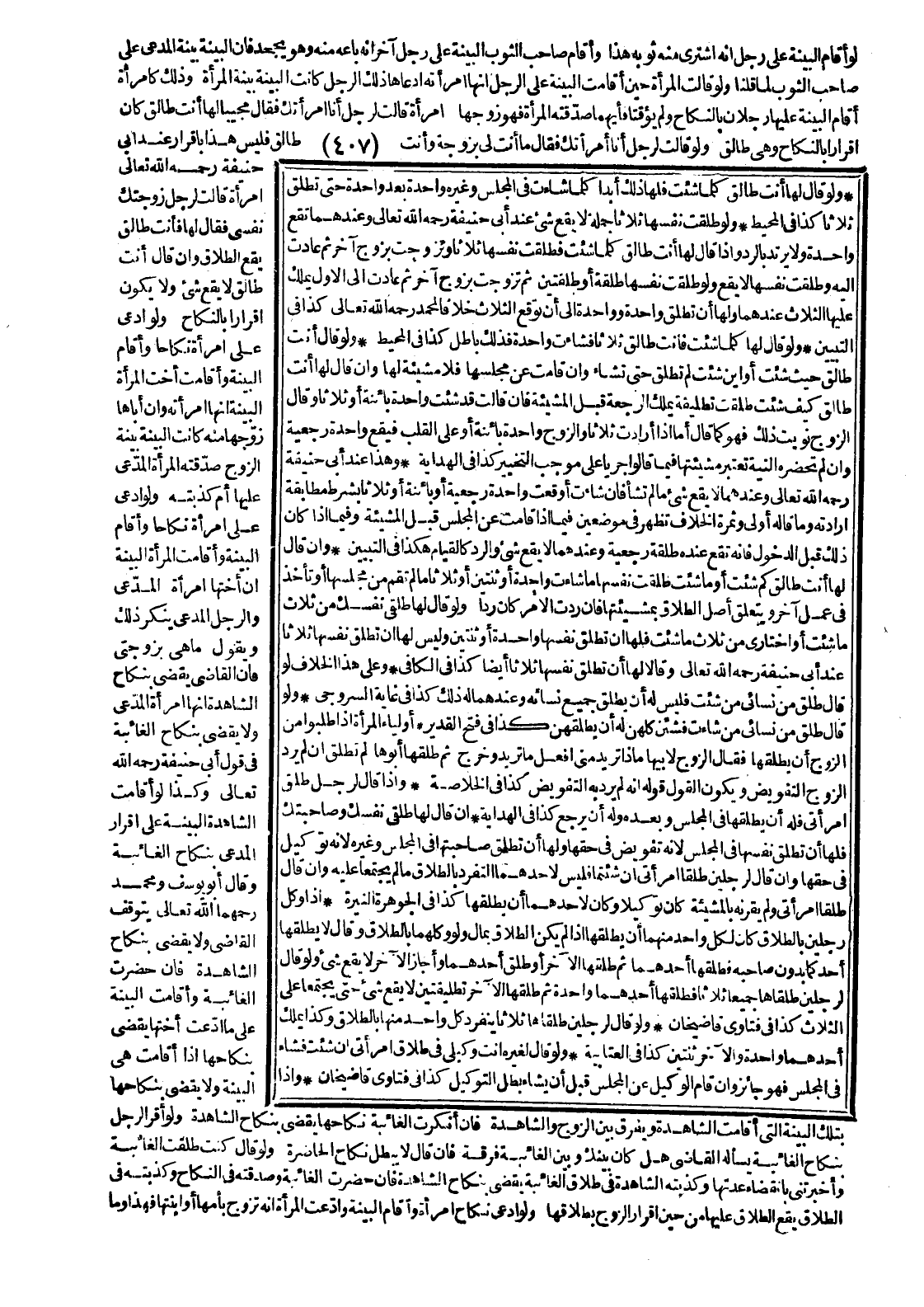 وَإِنْ قَالَ لَهَا: أَنْتِ طَالِقٌ كَمْ شِئْتِ أَوْ مَا شِئْتِ طَلَّقَتْ نَفْسَهَا مَا شَاءَتْ وَاحِدَةً أَوْ ثِنْتَيْنِ أَوْ ثَلَاثًا مَا لَمْ تَقُمْ مِنْ مَجْلِسِهَا أَوْ تَأْخُذْ فِي عَمَلٍ آخَرَ وَيَتَعَلَّقُ أَصْلُ الطَّلَاقِ بِمَشِيئَتِهَا فَإِنْ رَدَّتْ الْأَمْرَ كَانَ رَدًّا وَلَوْ قَالَ لَهَا: طَلِّقِي نَفْسَكِ مِنْ ثَلَاثٍ مَا شِئْتِ أَوْ اخْتَارِي مِنْ ثَلَاثٍ مَا شِئْتِ فَلَهَا أَنْ تُطَلِّقَ نَفْسَهَا وَاحِدَةً أَوْ ثِنْتَيْنِ وَلَيْسَ لَهَا أَنْ تُطَلِّقَ نَفْسَهَا ثَلَاثًا عِنْدَ أَبِي حَنِيفَةَ - رَحِمَهُ اللَّهُ تَعَالَى - وَقَالَا: لَهَا أَنْ تُطَلِّقَ نَفْسَهَا ثَلَاثًا أَيْضًا كَذَا فِي الْكَافِي وَعَلَى هَذَا الْخِلَافِ لَوْ قَالَ: طَلِّقْ مِنْ نِسَائِي مَنْ شِئْتَ فَلَيْسَ لَهُ أَنْ يُطَلِّقَ جَمِيعَ نِسَائِهِ وَعِنْدَهُمَا لَهُ ذَلِكَ كَذَا فِي غَايَةِ السُّرُوجِيِّ.