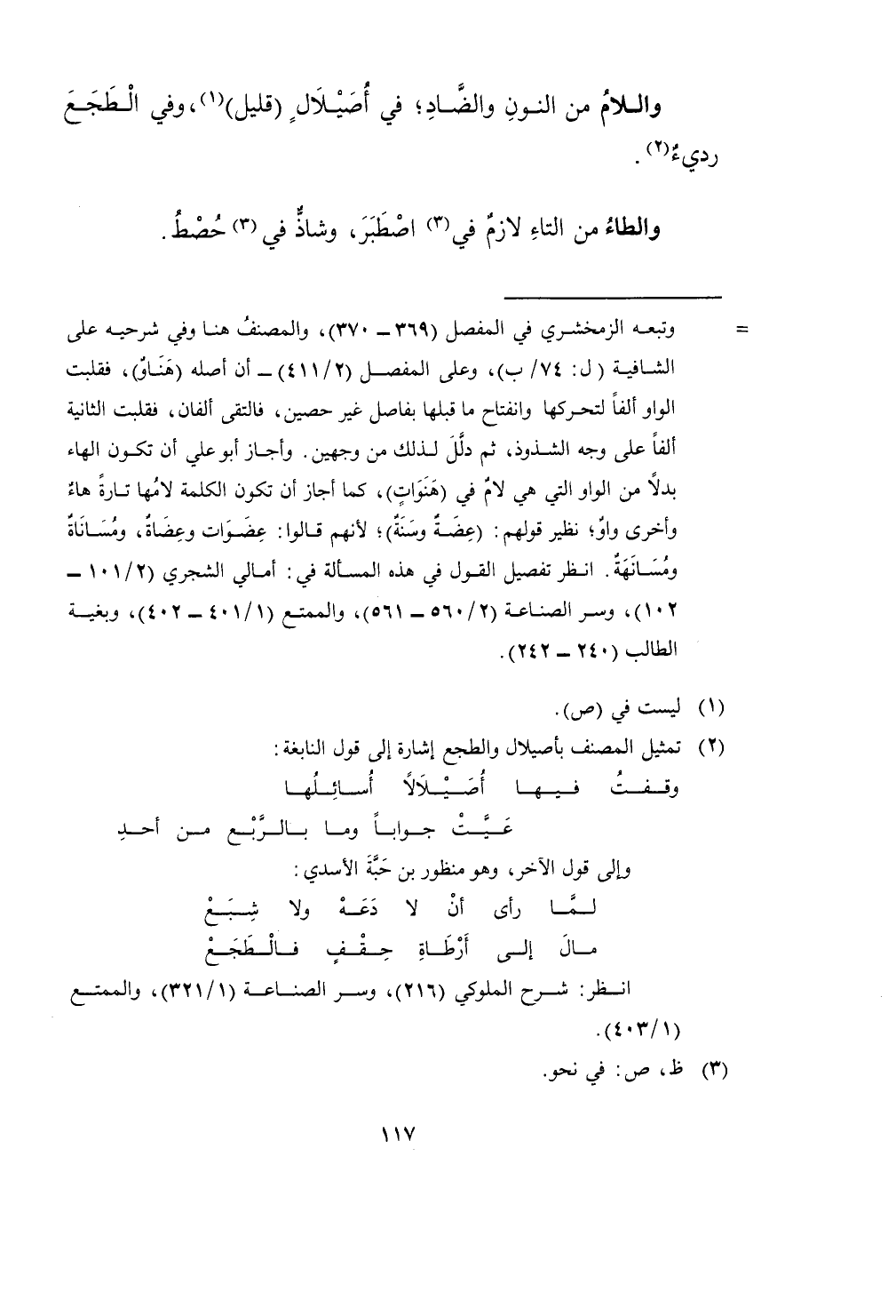 وَاللَّام من النُّون وَالضَّاد فِي أصيلال قَلِيل وَفِي الطجع رَدِيء